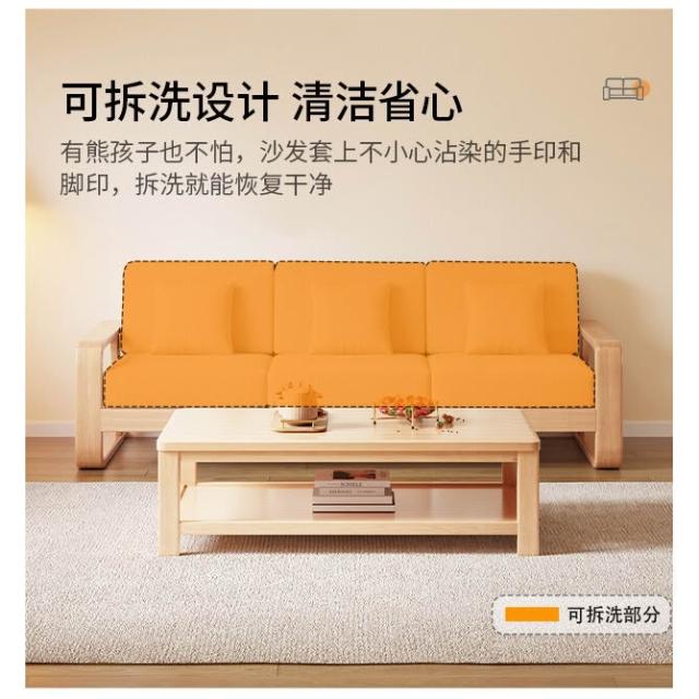免運 沙發 沙發椅 單人沙發 三人位实木沙发全实木客厅小户型北欧简约现代原木布艺沙发