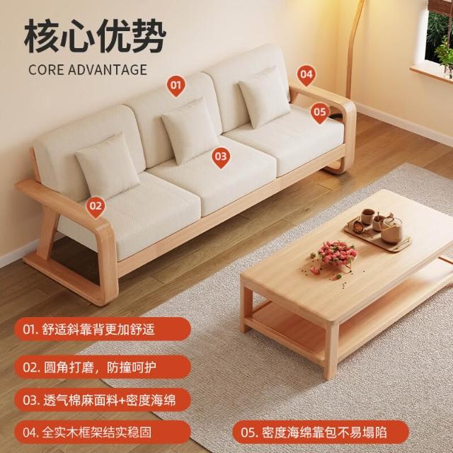 免運 沙發 沙發椅 單人沙發 三人位实木沙发全实木客厅小户型北欧简约现代原木布艺沙发