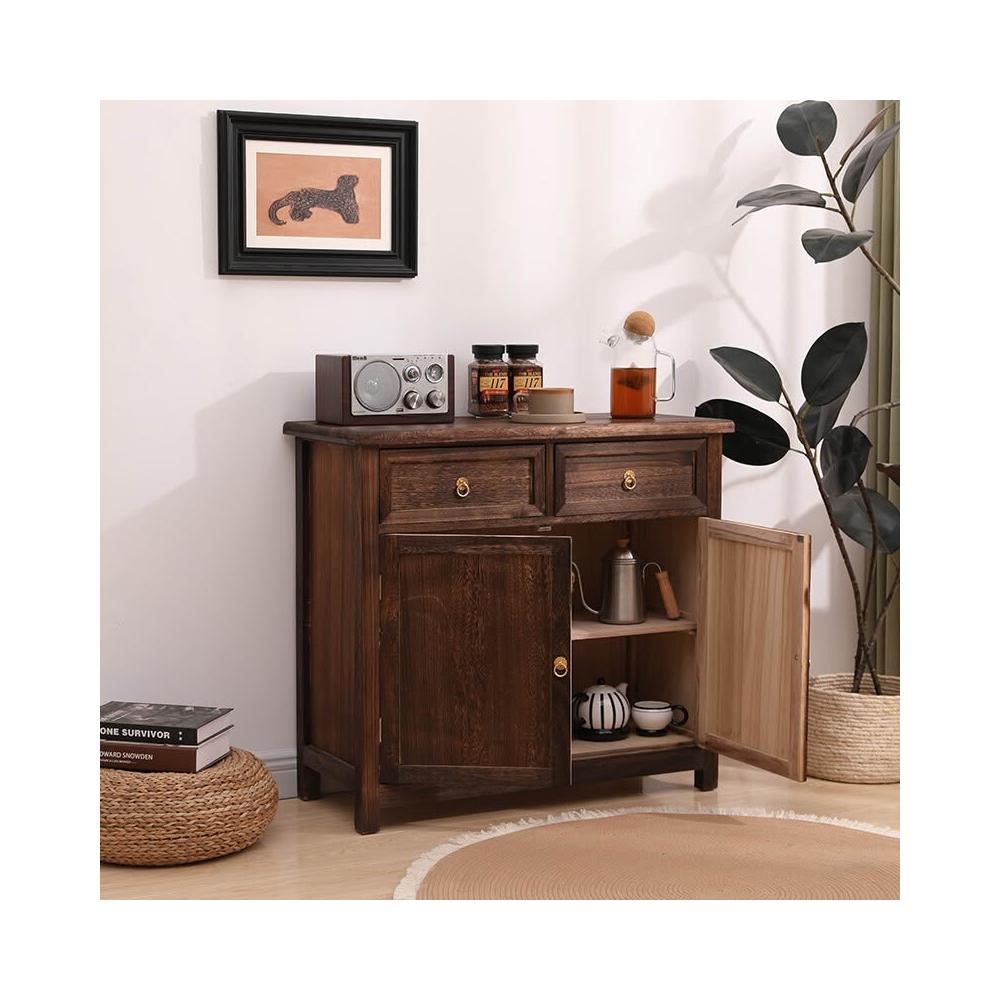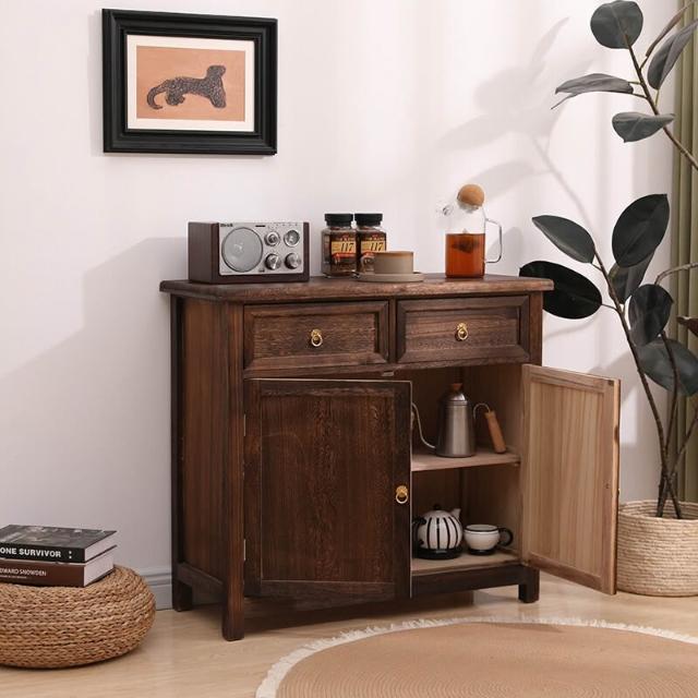 免運 免安裝 全實木桐木中式餐邊柜碗柜儲物櫃一體櫥柜茶水柜客廳餐廳收納柜子