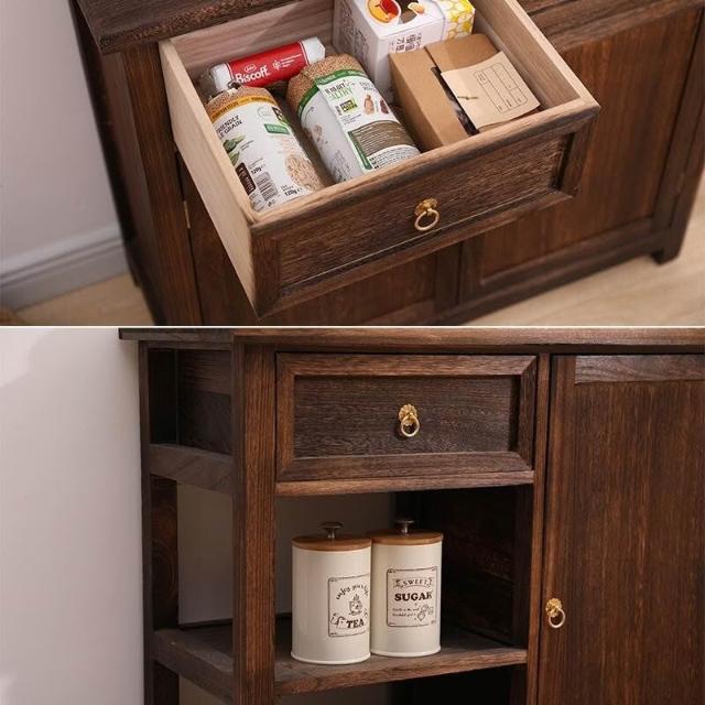 免運 免安裝 全實木桐木中式餐邊柜碗柜儲物櫃一體櫥柜茶水柜客廳餐廳收納柜子