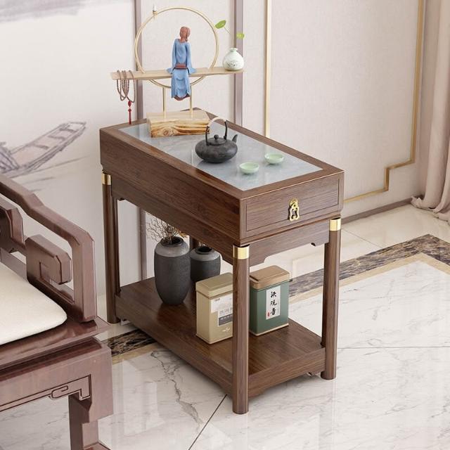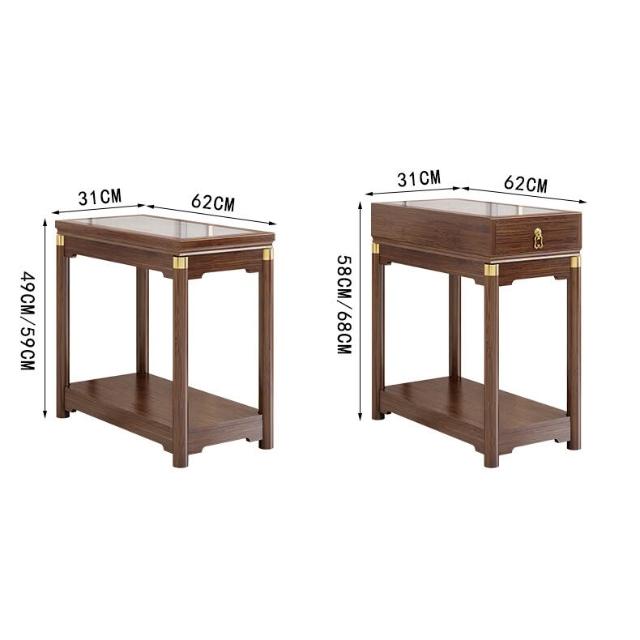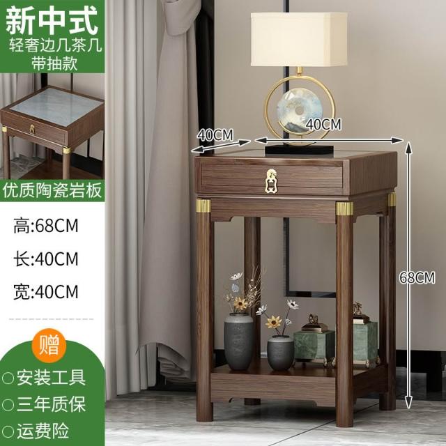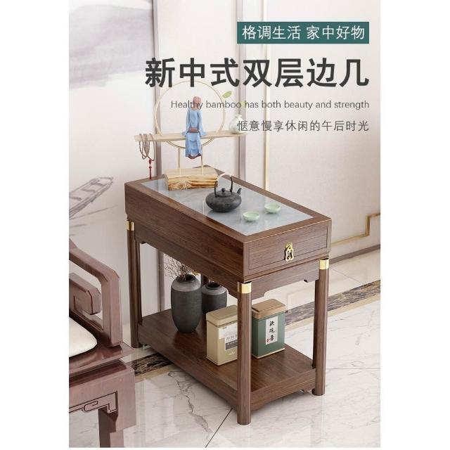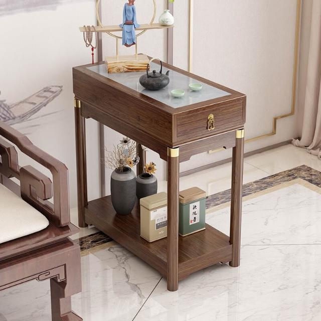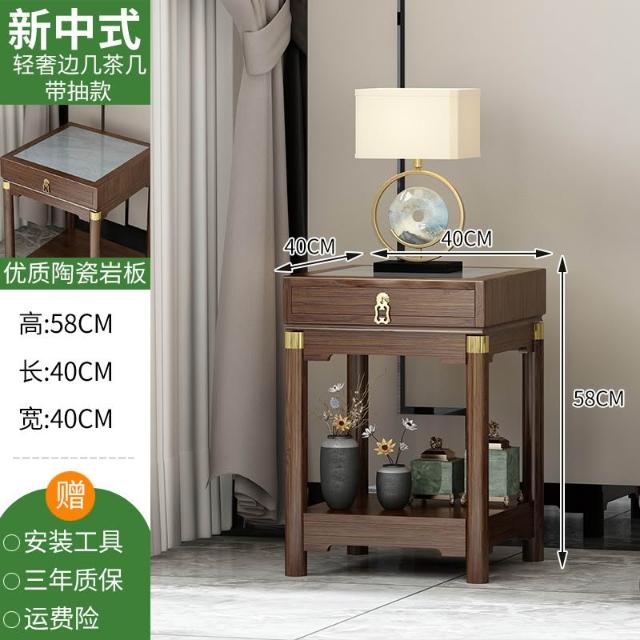 免運 側邊櫃床邊櫃窄櫃 新中式輕奢沙发边柜侧邊櫃岩板邊幾角幾實木古典客廳茶几窄邊桌