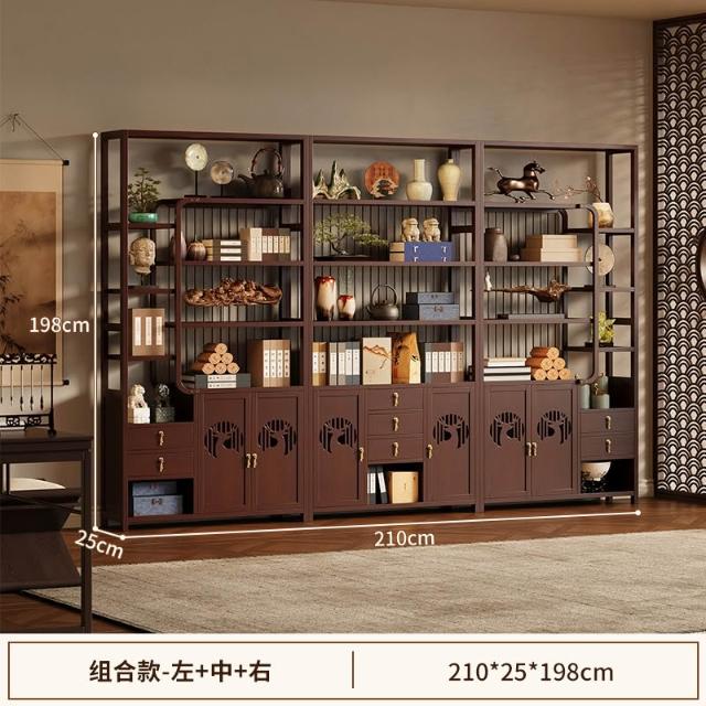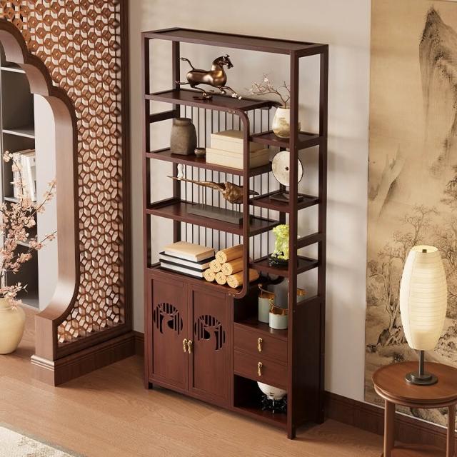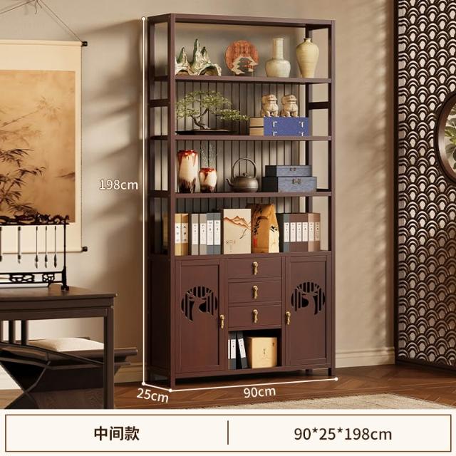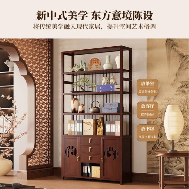 免運 博古架新中式茶叶展示柜现代简约多宝阁收纳柜茶室茶具茶柜置物架