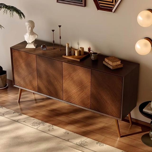 免運 实木餐边柜原木复古客厅靠墙收纳储物柜现代简约小户型入户玄关柜