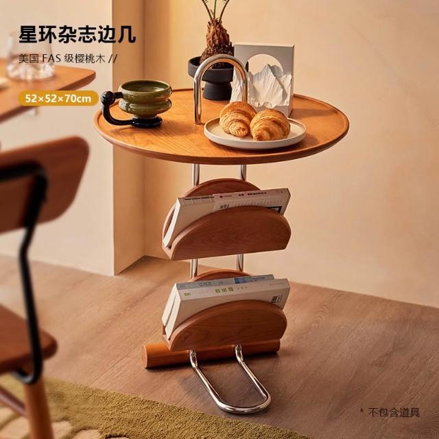 免運 实木圆几客厅茶几移动小推车卧室床头柜小户型樱桃木边几阳台角几