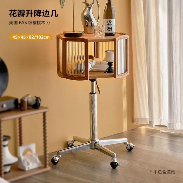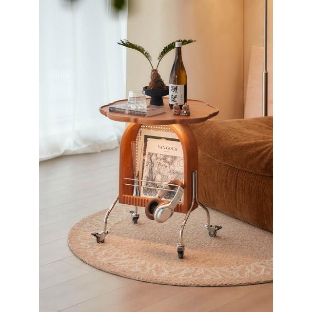 免運 实木圆几客厅茶几移动小推车卧室床头柜小户型樱桃木边几阳台角几