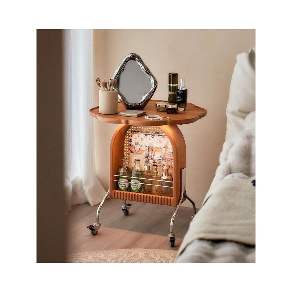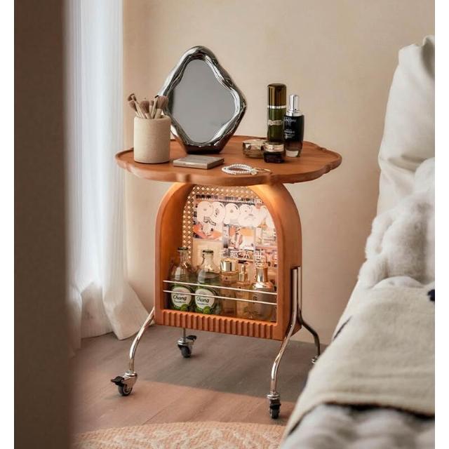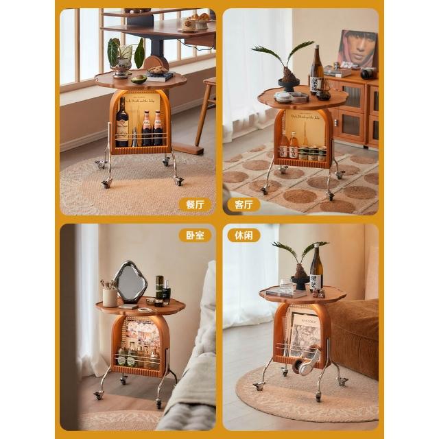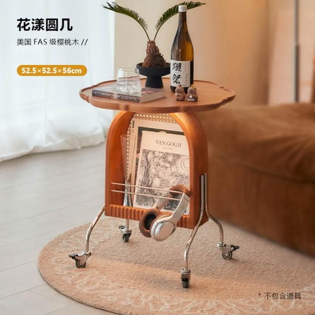 免運 实木圆几客厅茶几移动小推车卧室床头柜小户型樱桃木边几阳台角几