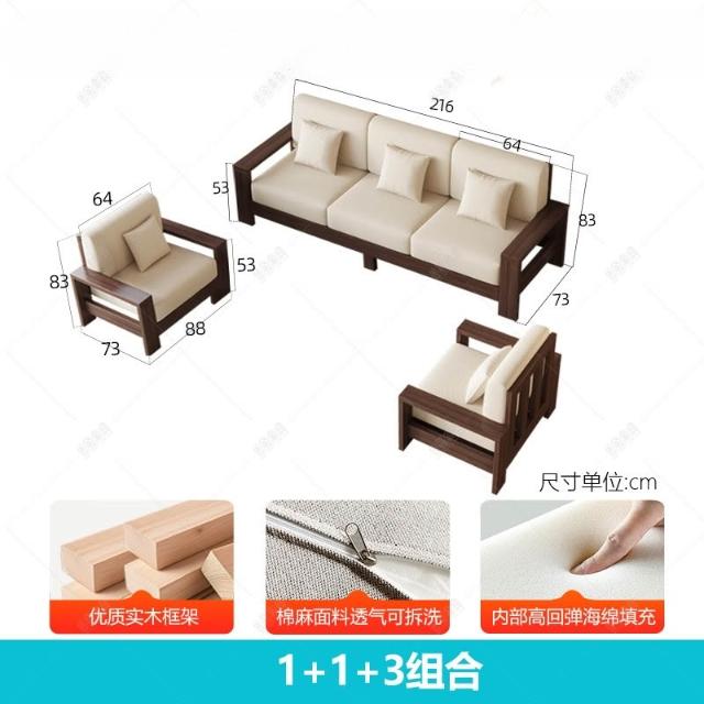 免運 沙發椅 單人沙發 多人沙發 实木沙发客厅2025新款家用现代简约新中式全实木布艺沙发