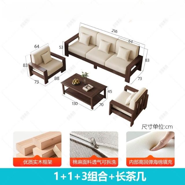 免運 沙發椅 單人沙發 多人沙發 实木沙发客厅2025新款家用现代简约新中式全实木布艺沙发