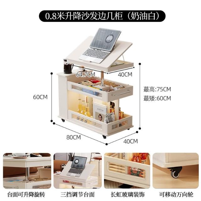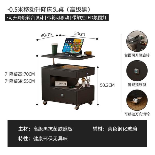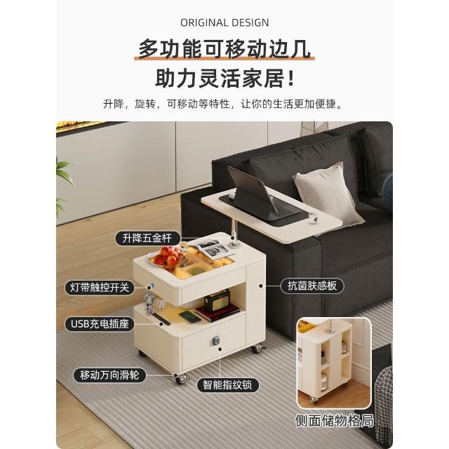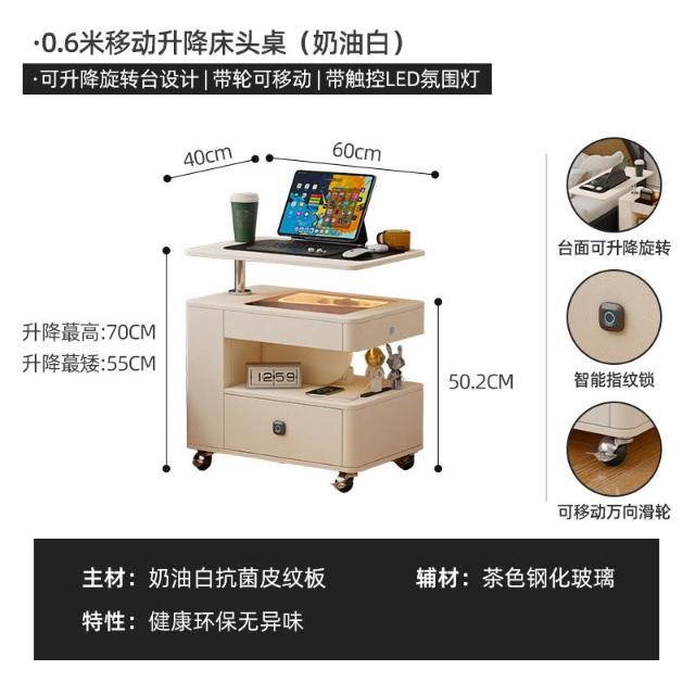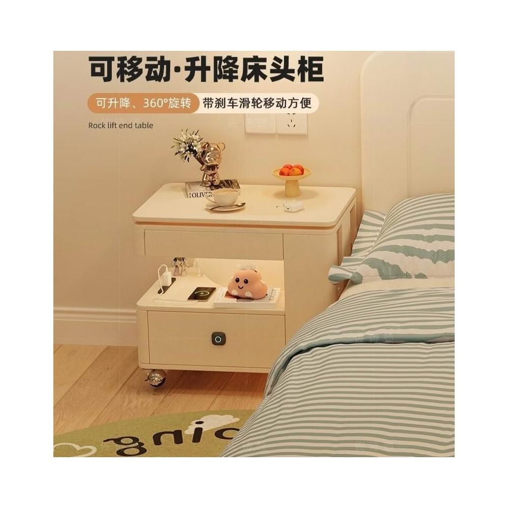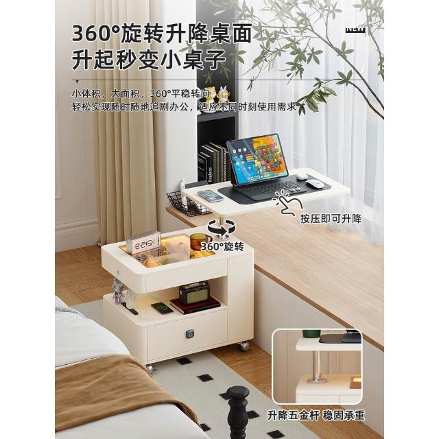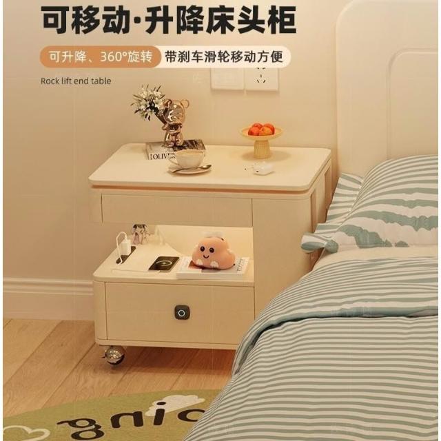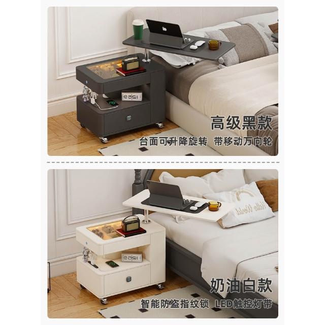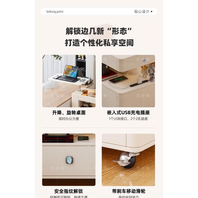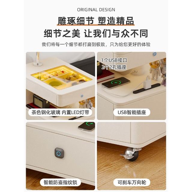 免運 奶油风氛围感床头柜暗藏玄机的床边柜窄长条储物柜带指纹锁收纳柜