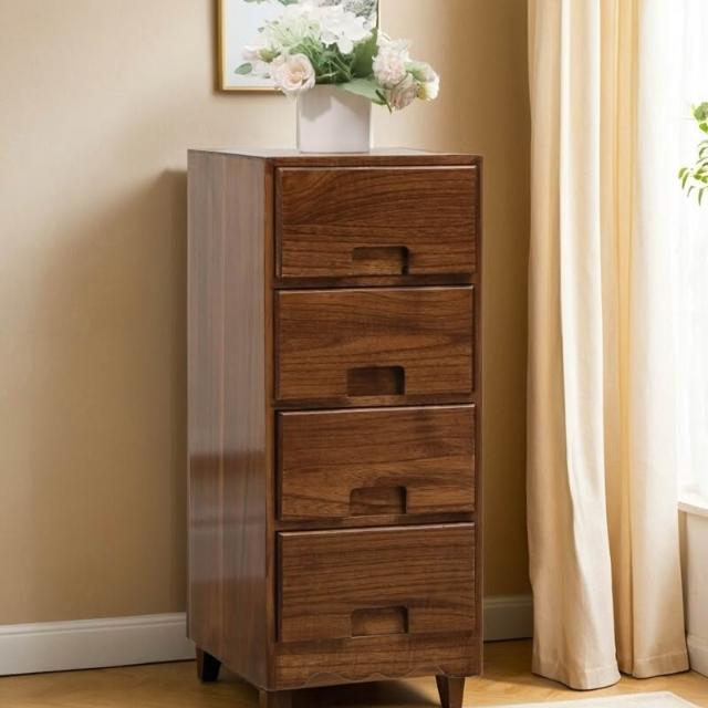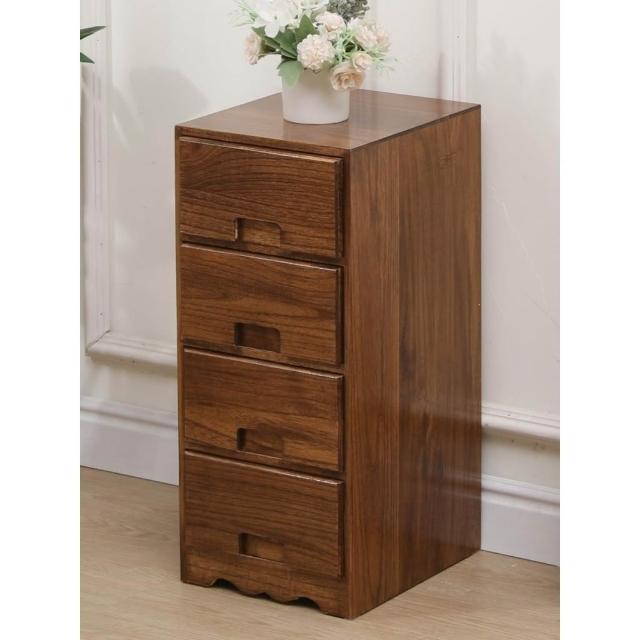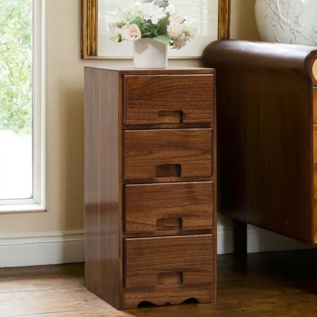 免運 免安裝 实木五斗柜简约现代边柜胡桃木色客厅收纳柜卧室25cm抽屉储物柜子