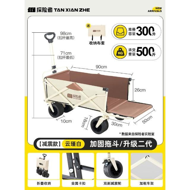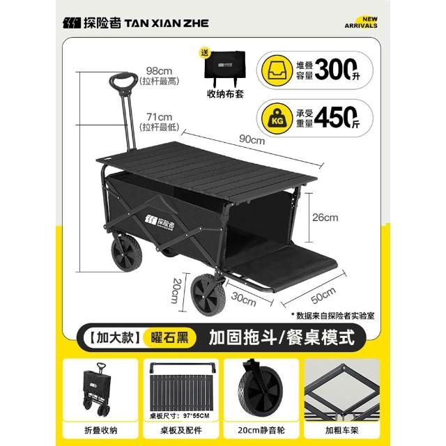 免運 露營推車 車桌兩用 戶外折疊手推車探险者露营车推车户外可折叠营地车儿童可躺野营小拖车野餐手推车
