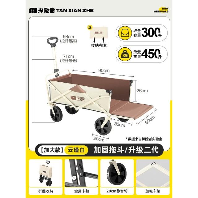 免運 露營推車 車桌兩用 戶外折疊手推車探险者露营车推车户外可折叠营地车儿童可躺野营小拖车野餐手推车