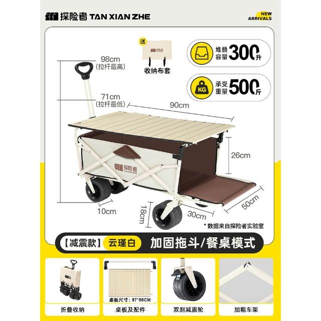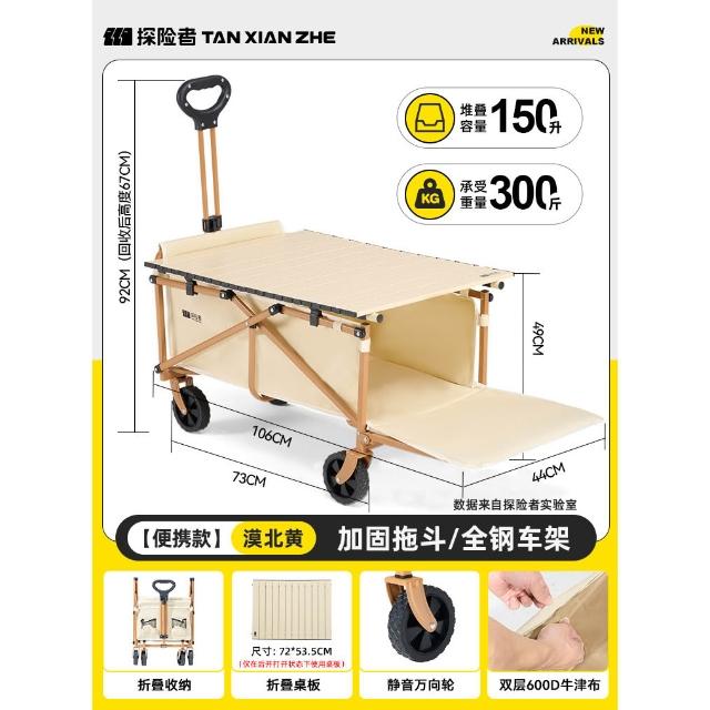 免運 露營推車 車桌兩用 戶外折疊手推車探险者露营车推车户外可折叠营地车儿童可躺野营小拖车野餐手推车