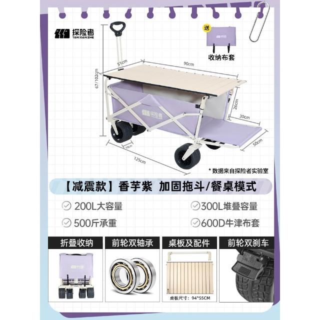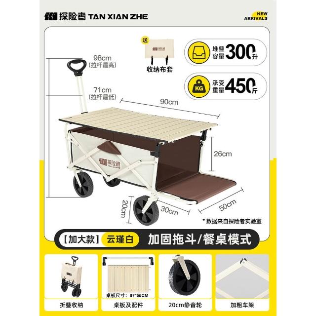 免運 露營推車 車桌兩用 戶外折疊手推車探险者露营车推车户外可折叠营地车儿童可躺野营小拖车野餐手推车