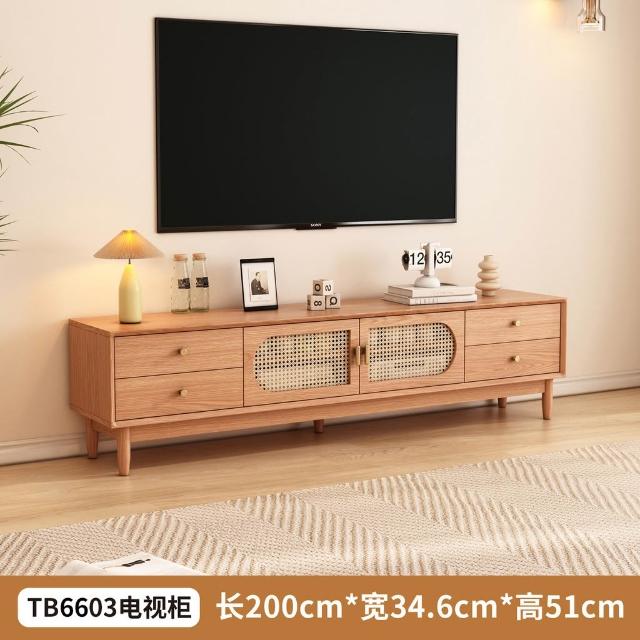 免運 实木框电视柜客厅家用储物茶几小户型北欧风整装藤编地柜电视机柜