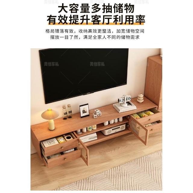 免運 实木框电视柜客厅家用储物茶几小户型北欧风整装藤编地柜电视机柜