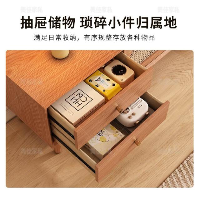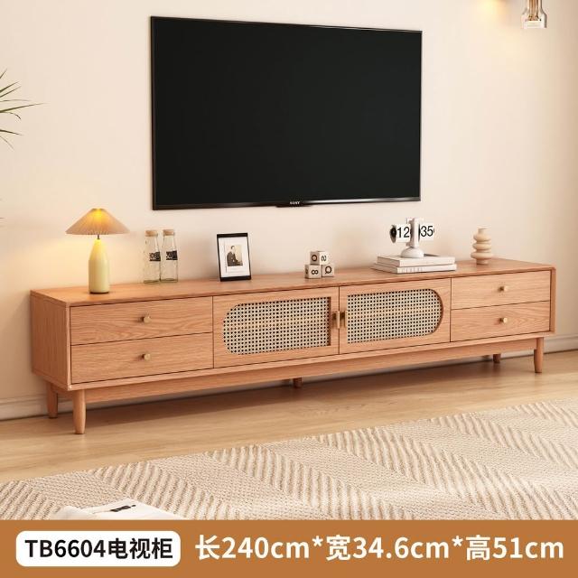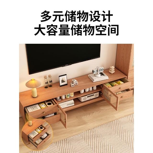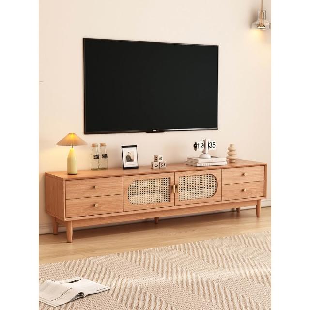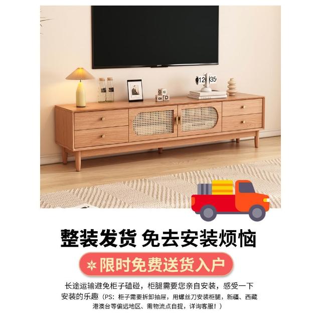 免運 实木框电视柜客厅家用储物茶几小户型北欧风整装藤编地柜电视机柜
