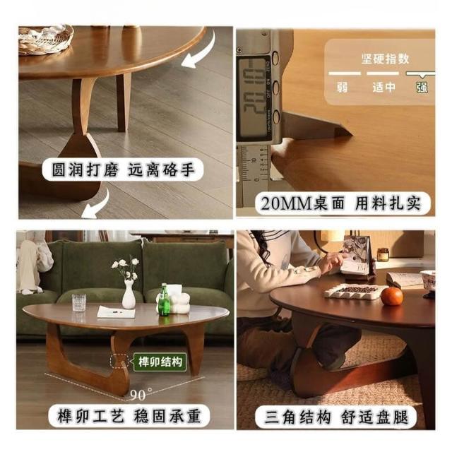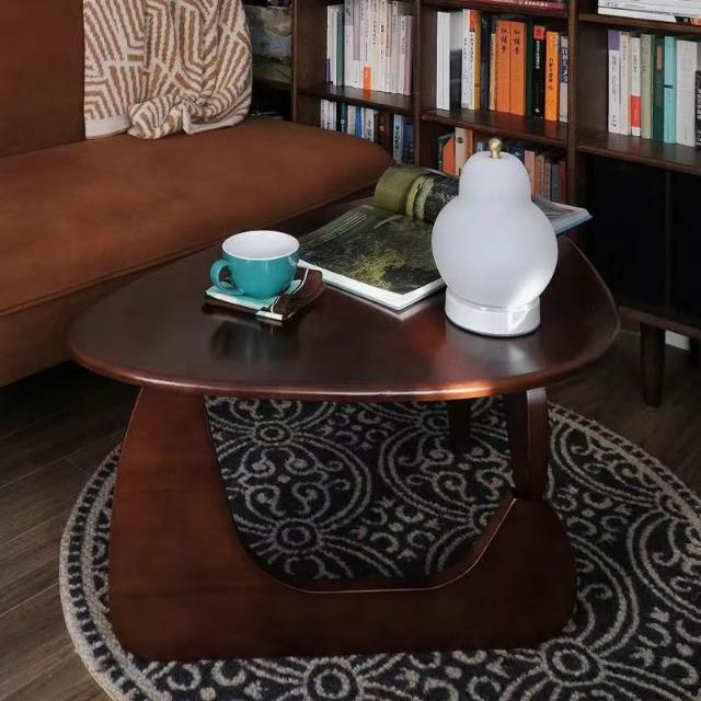 免運 茶几 邊几 小餐桌 復中古實木茶幾黑胡桃客廳家用小戶型侘寂風桌子簡約三角異形邊幾