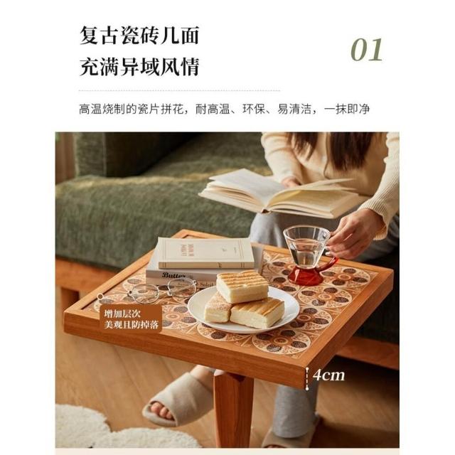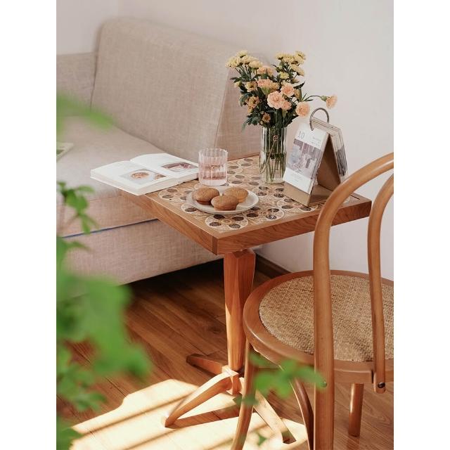 免運 邊幾 邊桌 法式中復古沙發邊幾移動櫻桃實木小茶几床頭咖啡陽臺方圓桌子家具