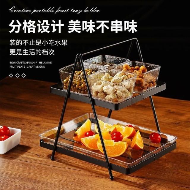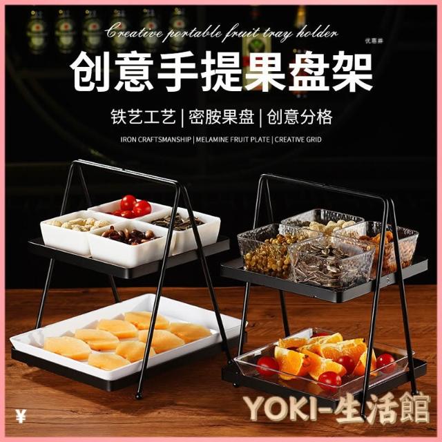 🔥熱銷新款 水果盤 幹果盤 糖果盤 零食盤 點心盤 多功能 雙層果盤架ktv專用四宮格拚盤幹果盤酒吧分格盤商用小喫碟水