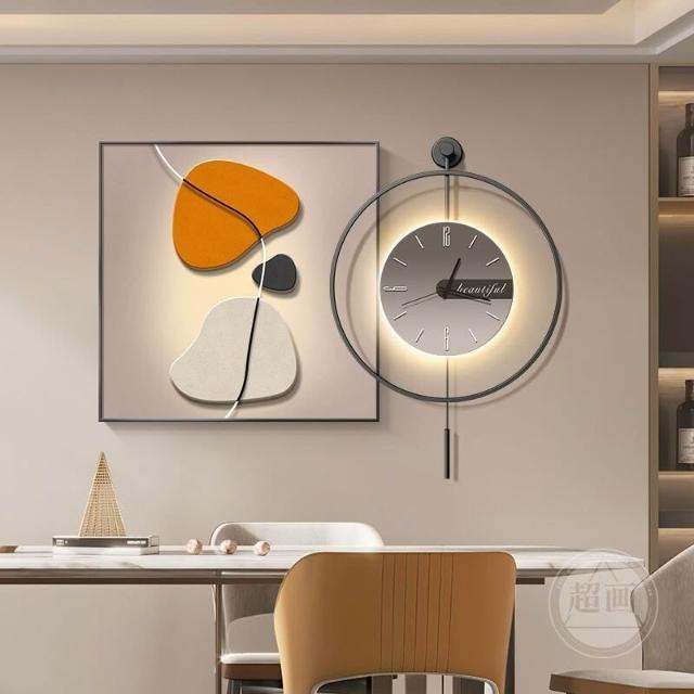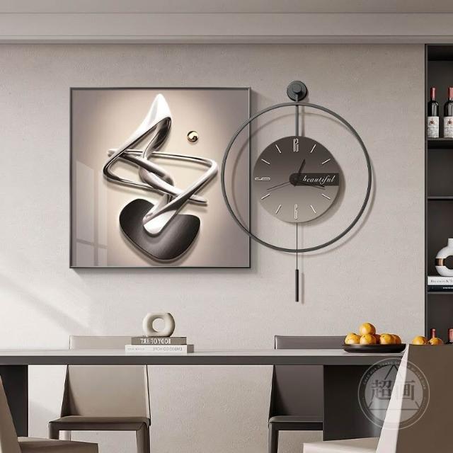 🔥熱銷新款 簡約掛鐘 北歐風時鐘 鐘錶 掛鐘 客廳時鐘 現代簡約餐廳裝飾畵高檔抽象餐桌鍾錶掛畵大氣輕奢客廳墻壁畵時鍾