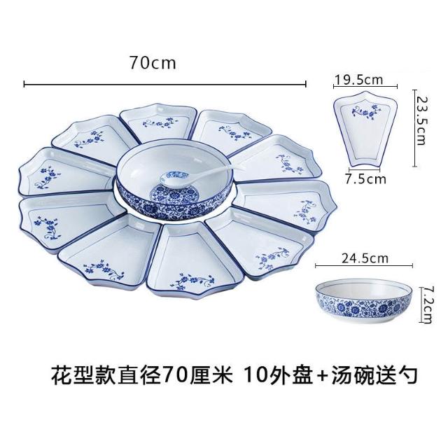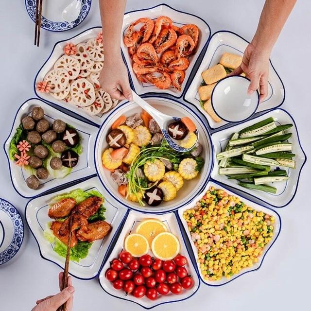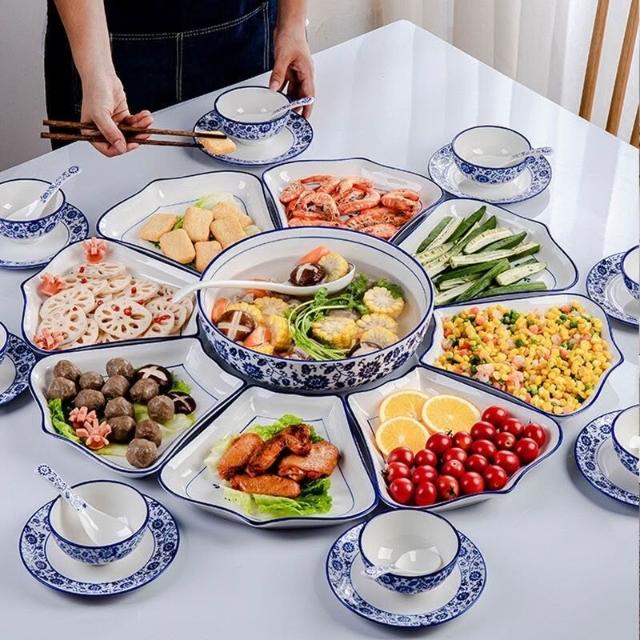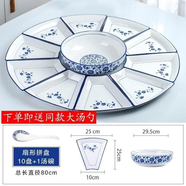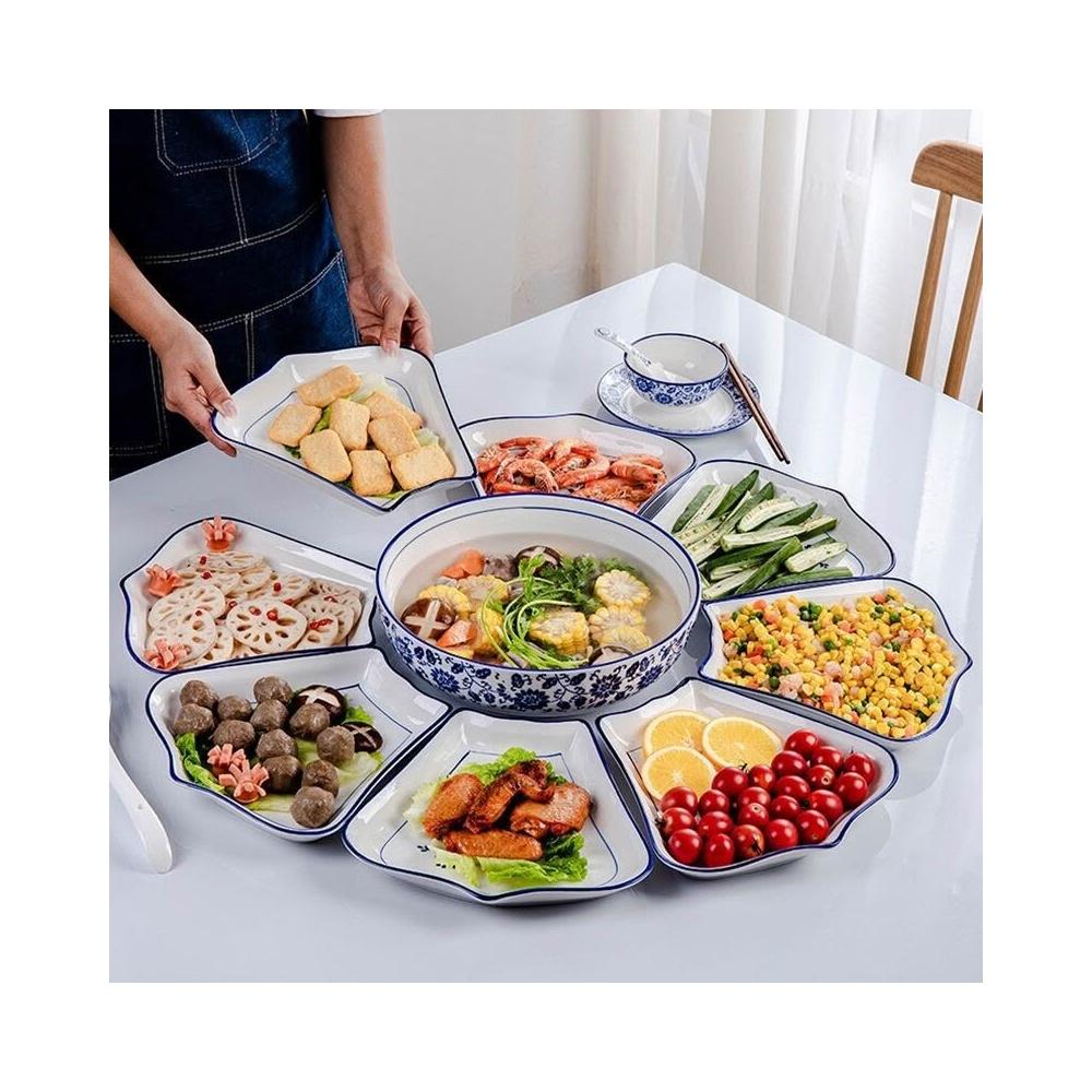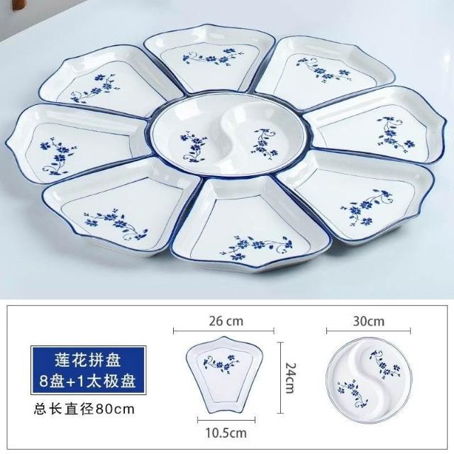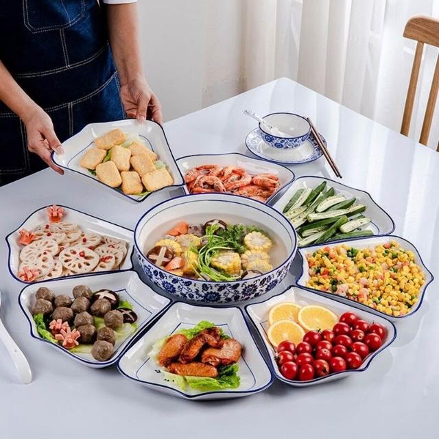 組閤盤子 陶瓷拚盤 團圓餐盤 拚盤組閤 拚盤套裝 餐盤 拚盤餐具組閤家用擺盤創意陶瓷飯桌家庭團圓聚會盤子