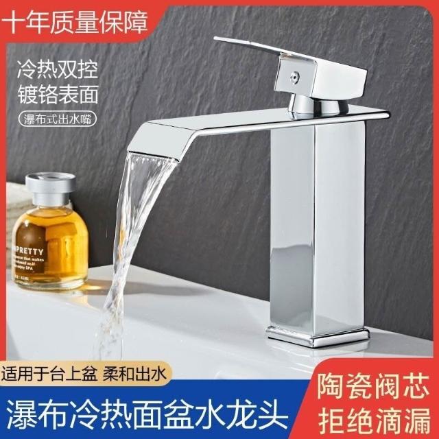 🔥熱銷新款 水龍頭 臉盆水龍頭 浴室水龍頭 冷熱水龍頭 龍頭浴室瀑布麵盆洗臉盆臺上衛生間洗手盆家用水龍頭浴室櫃冷熱水