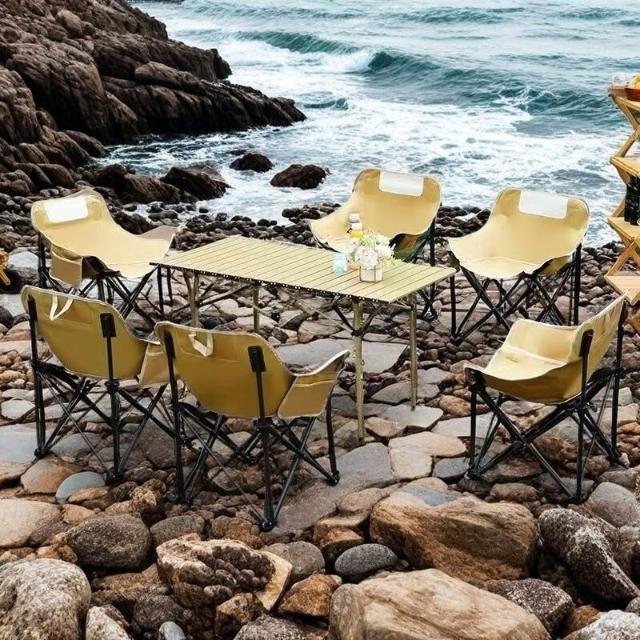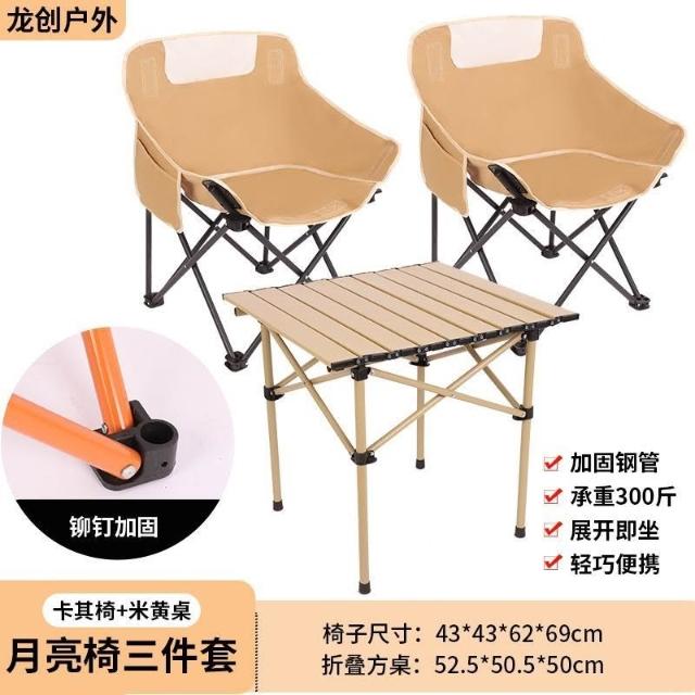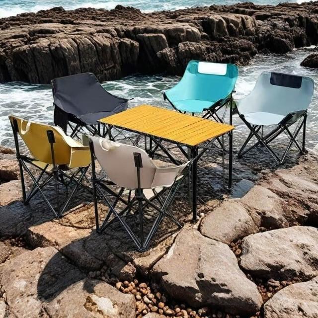 🔥熱銷新款 折疊椅 野餐椅 折疊椅 釣魚椅 便攜折疊椅 露營折疊椅 戶外桌椅折疊蛋捲桌月亮椅套裝露營野餐便攜式寫生椅家