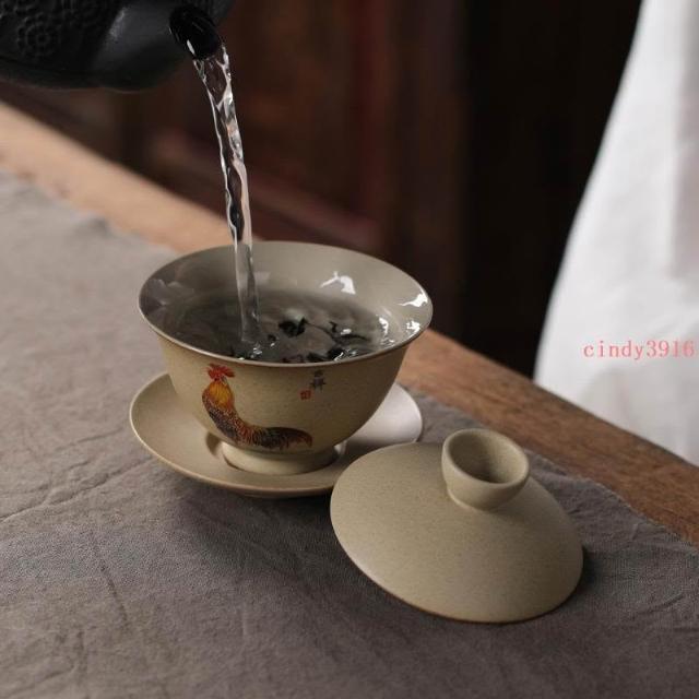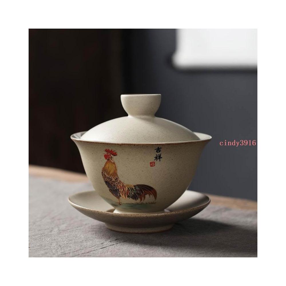 推薦 蓋碗三才大號陶瓷泡茶碗功夫茶具茶杯家用復古泡茶器粗陶蓋碗