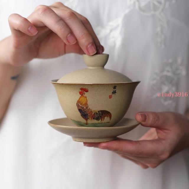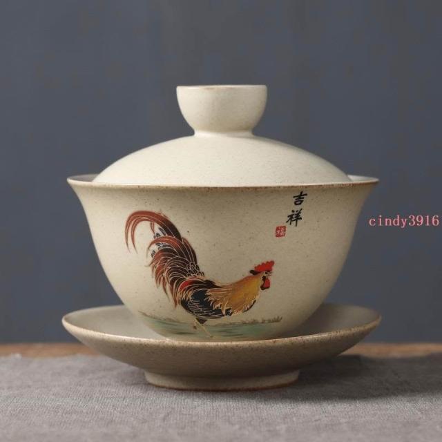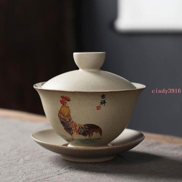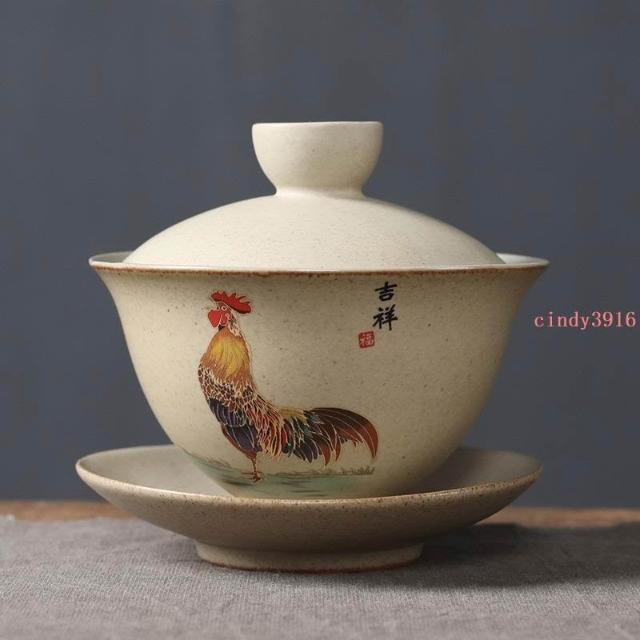 推薦 蓋碗三才大號陶瓷泡茶碗功夫茶具茶杯家用復古泡茶器粗陶蓋碗