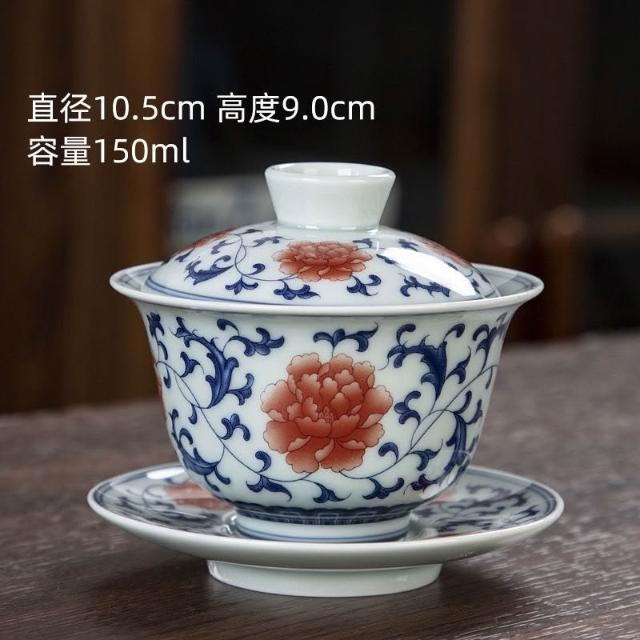 推薦 復古青花釉中彩蓋碗泡茶杯三才蓋碗