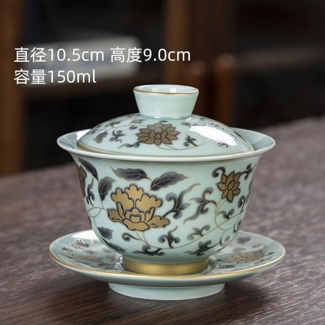 推薦 復古青花釉中彩蓋碗泡茶杯三才蓋碗