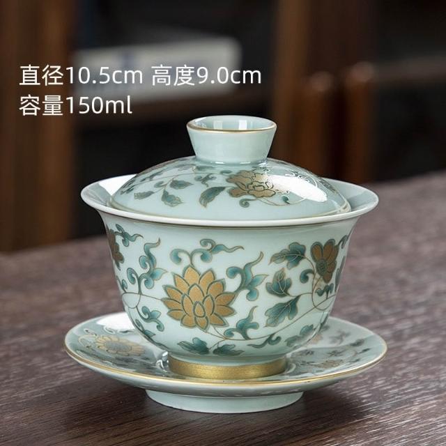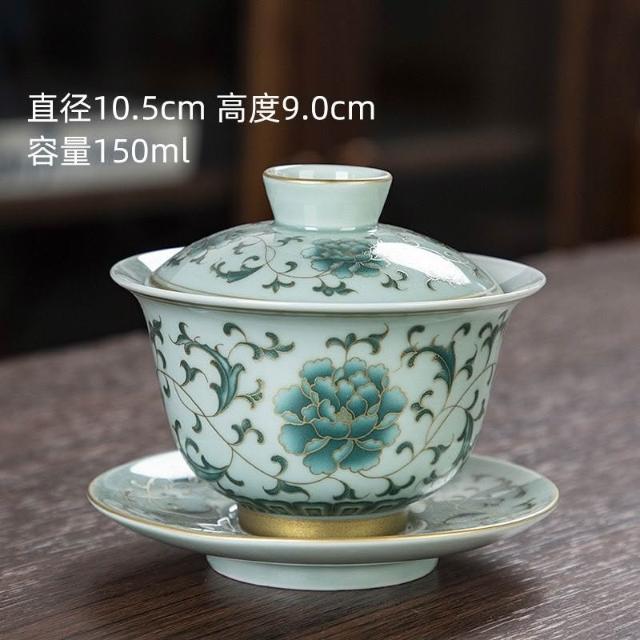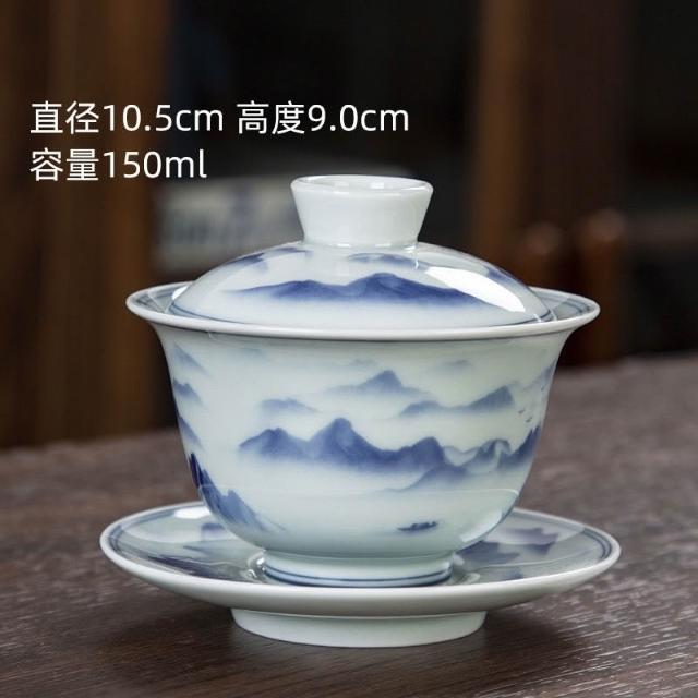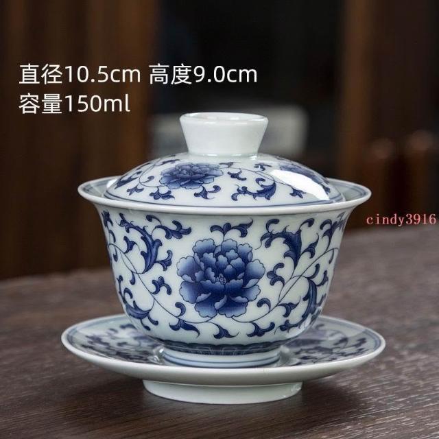 推薦 復古青花釉中彩蓋碗泡茶杯三才蓋碗