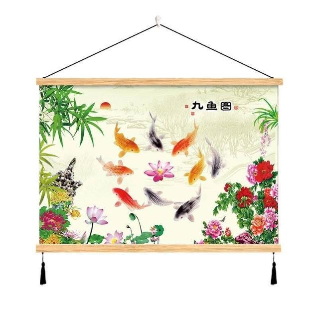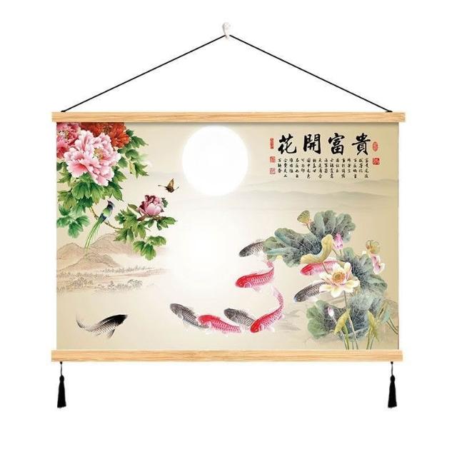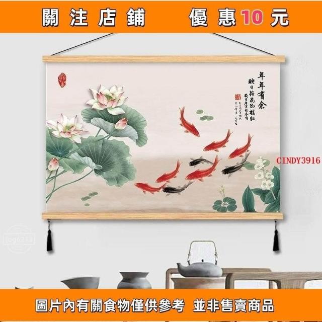 {滿299發貨}美語畵 九壁畵 荷花九圖 玄關畵 招財納福 電箱遮擋 中式荷花客cindy3916