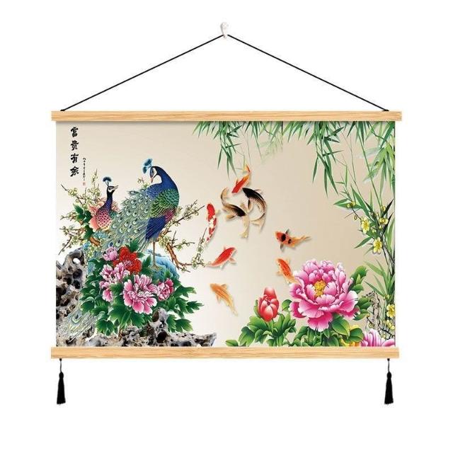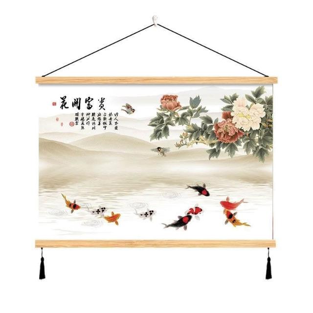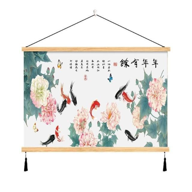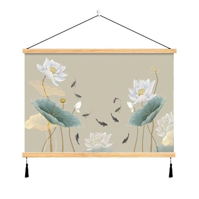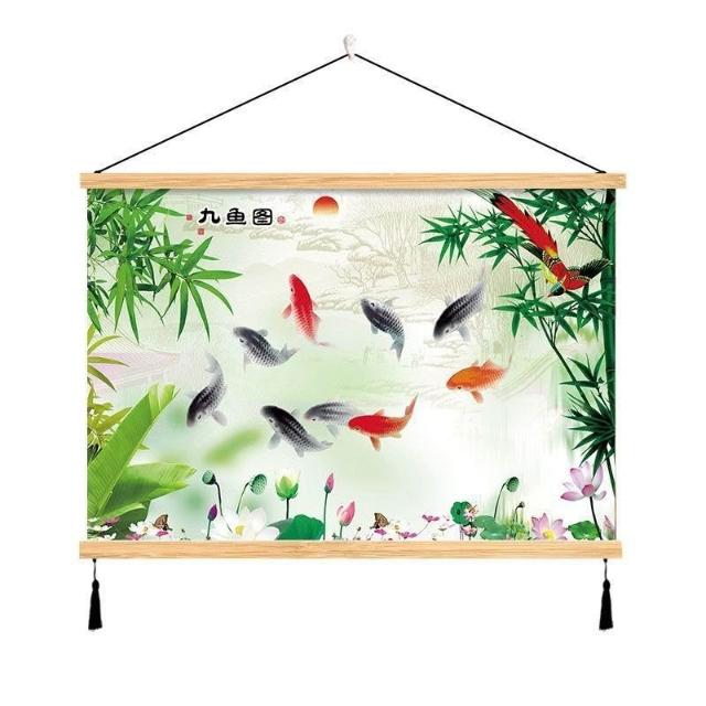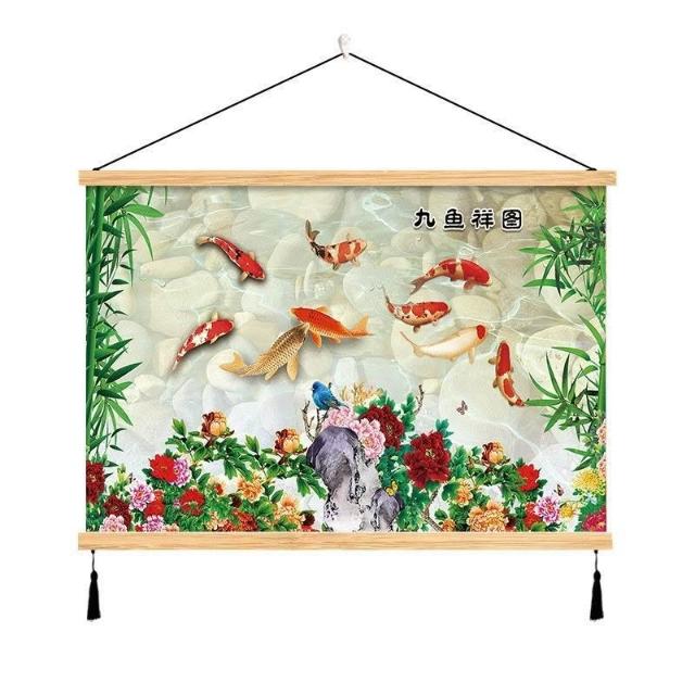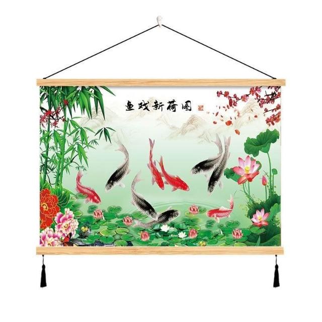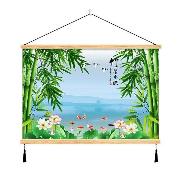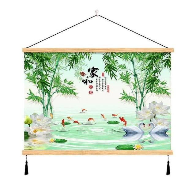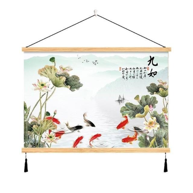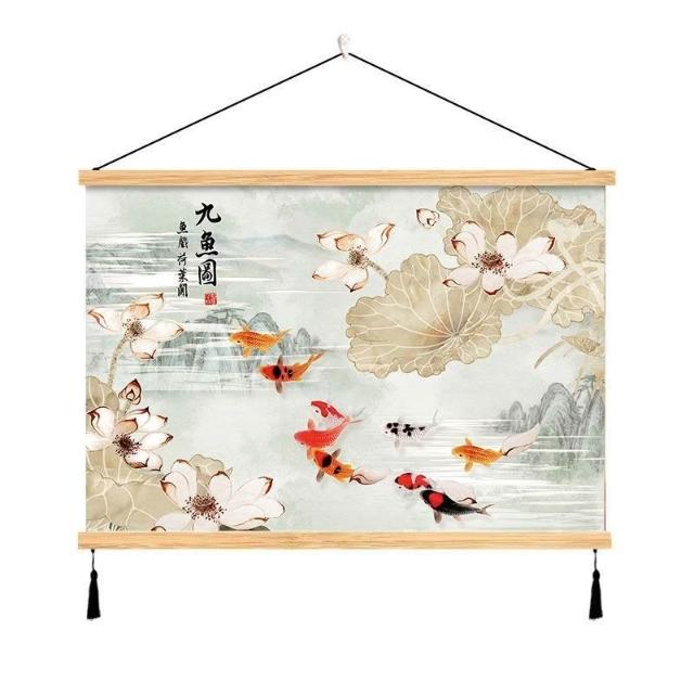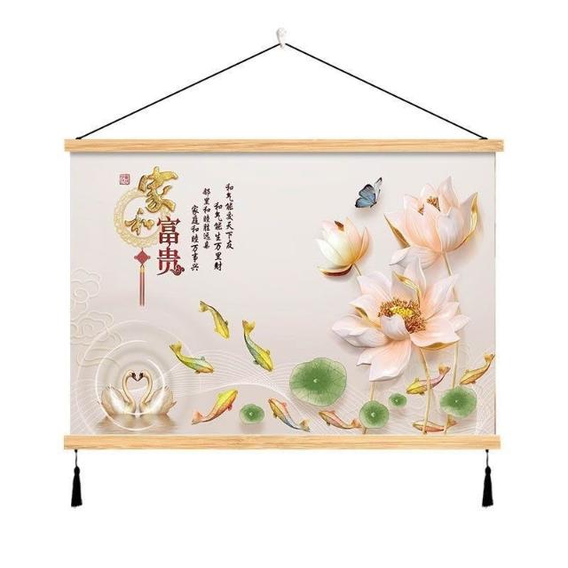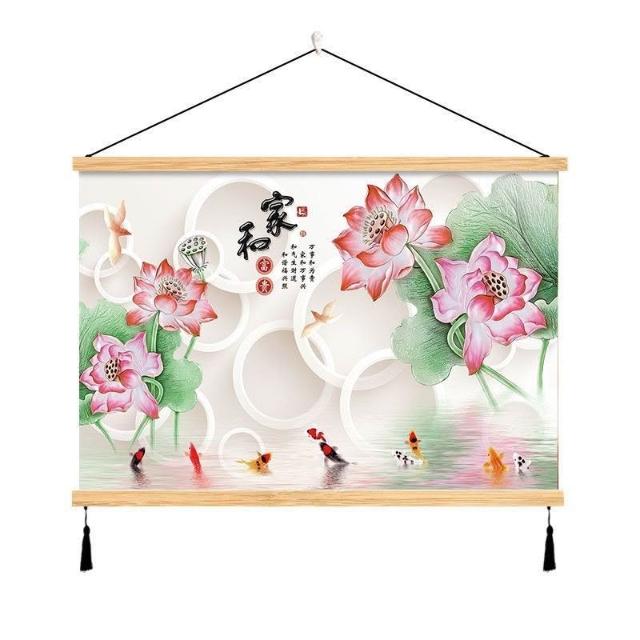 {滿299發貨}美語畵 九壁畵 荷花九圖 玄關畵 招財納福 電箱遮擋 中式荷花客cindy3916