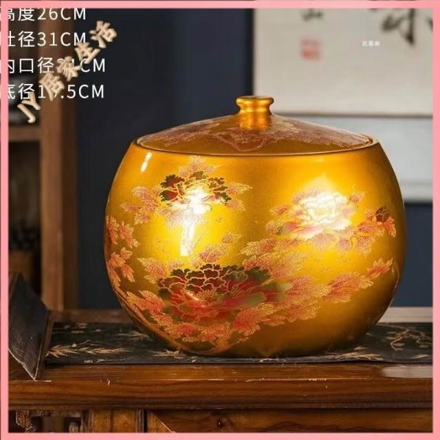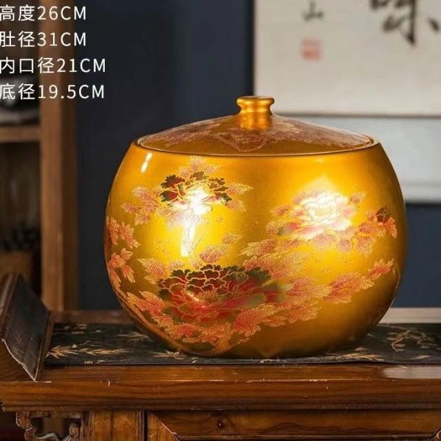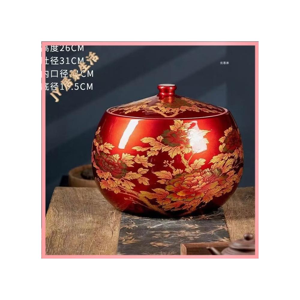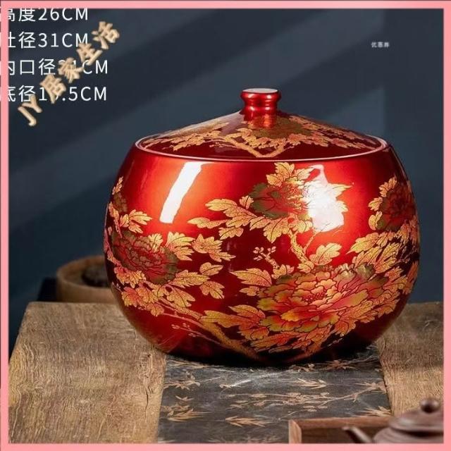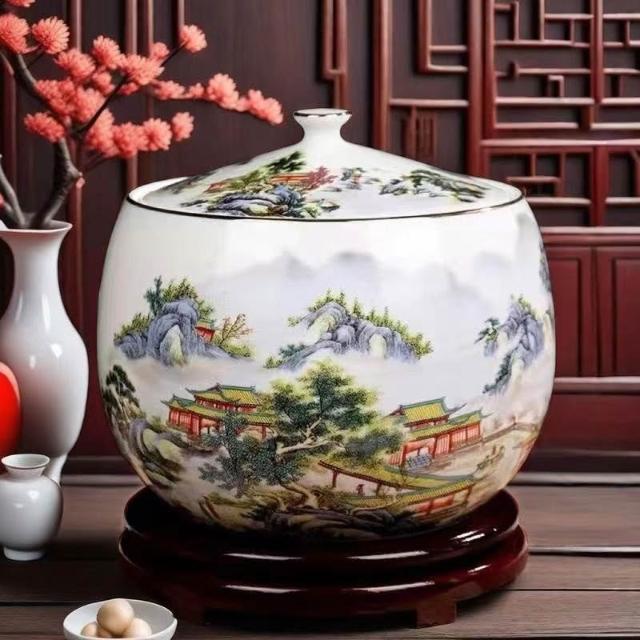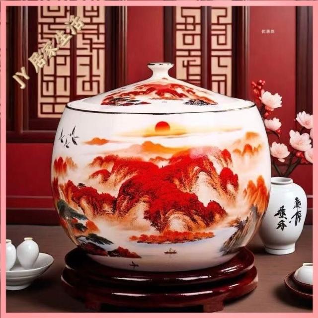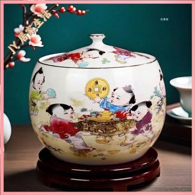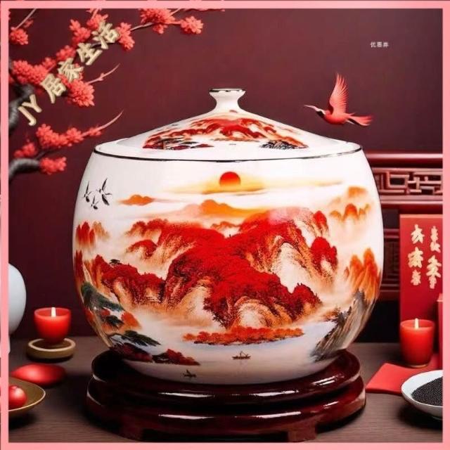 JY-米缸 陶瓷米缸 米桶 儲米桶 廚房收納桶 五穀收納桶 景德鎮陶瓷米缸家用喬遷密封儲物罐米桶帶蓋聚寶盆有蓋米缸陶瓷