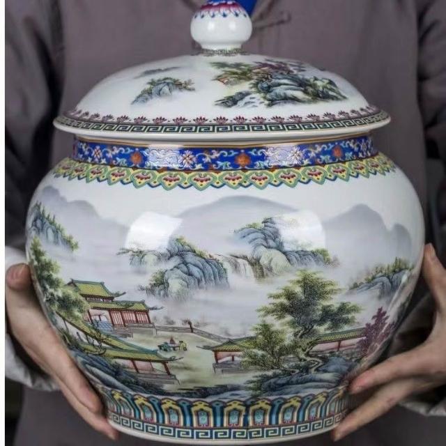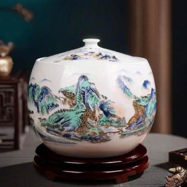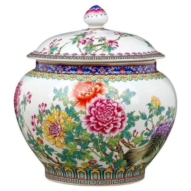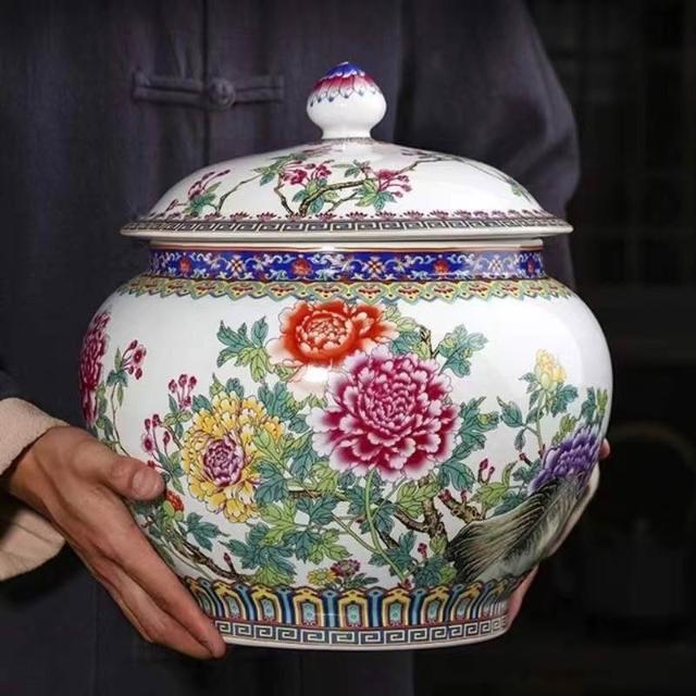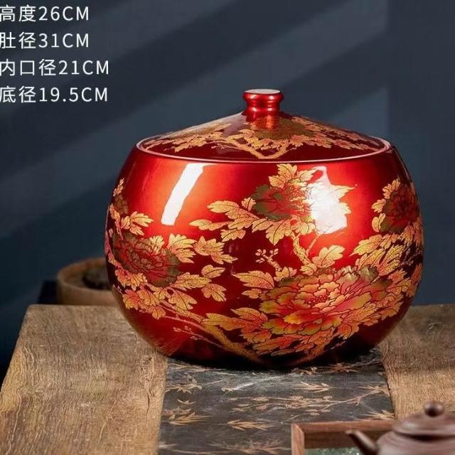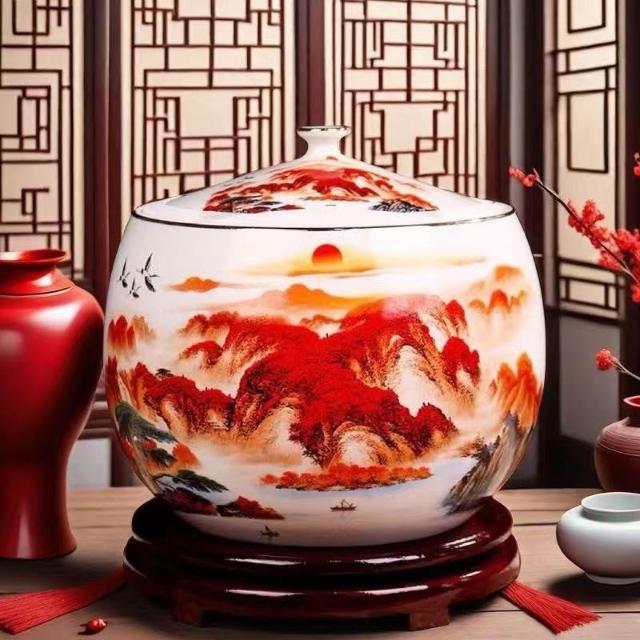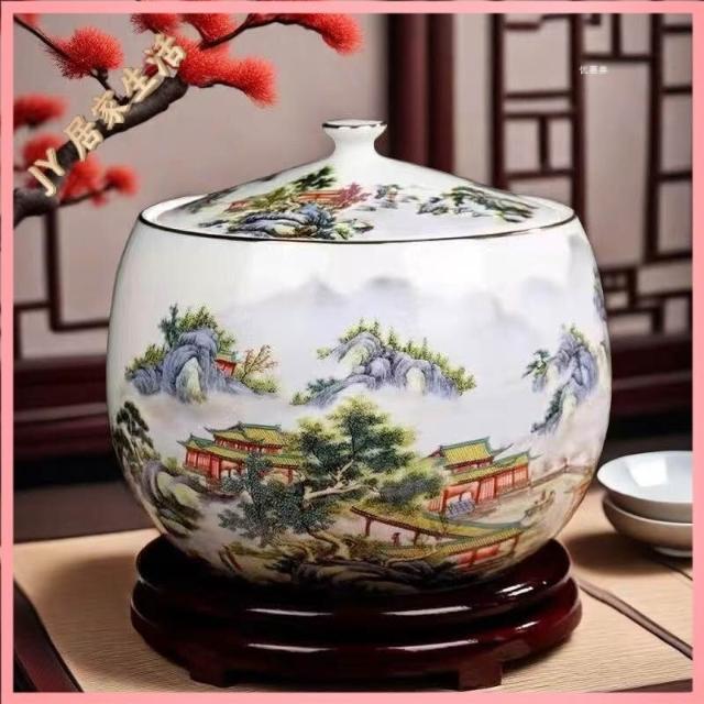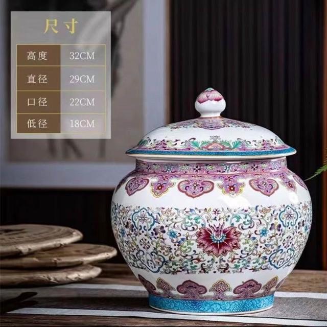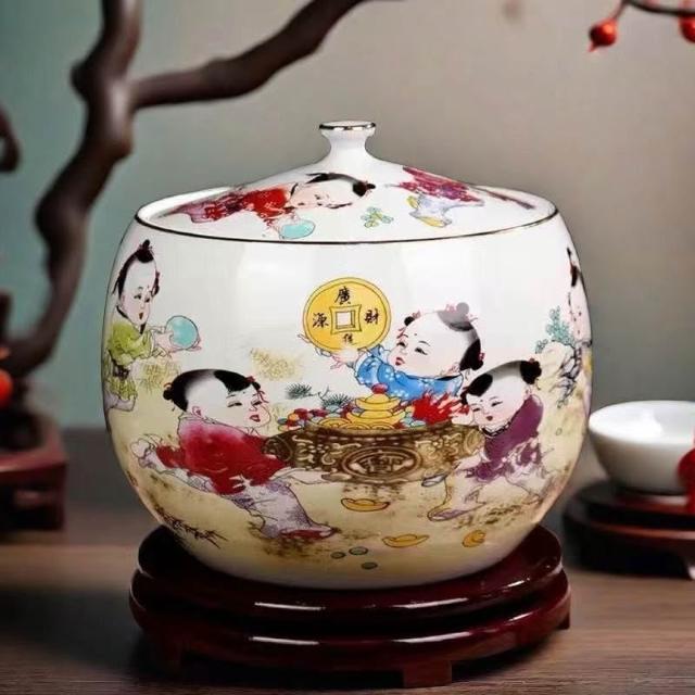 JY-米缸 陶瓷米缸 米桶 儲米桶 廚房收納桶 五穀收納桶 景德鎮陶瓷米缸家用喬遷密封儲物罐米桶帶蓋聚寶盆有蓋米缸陶瓷