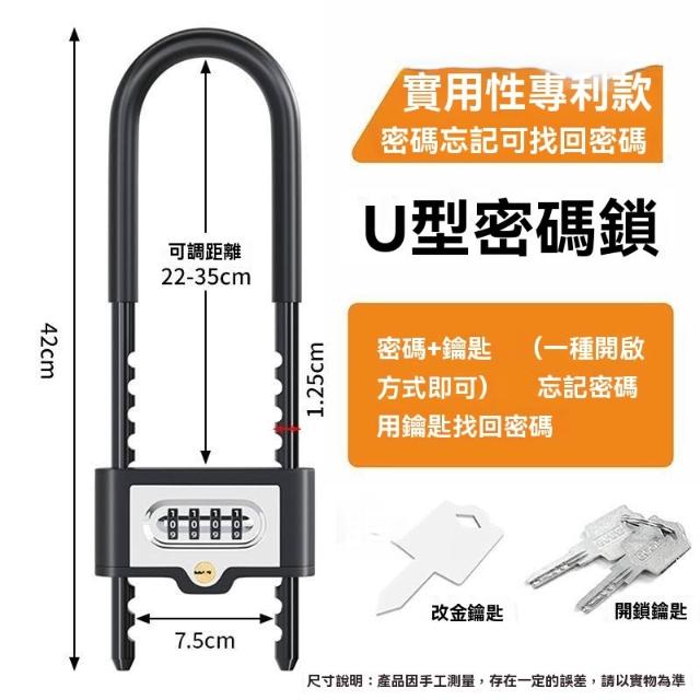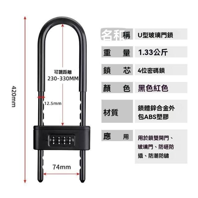 🔥熱銷新款 U型鎖 雙門防盜鎖 電動摩托車鎖 加長U形鎖 密碼玻璃商鋪門鎖雙開門插鎖防盜雙門密碼鎖防盜鎖加長u型密碼鎖