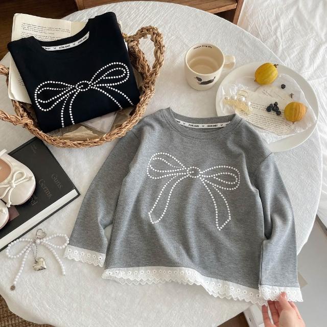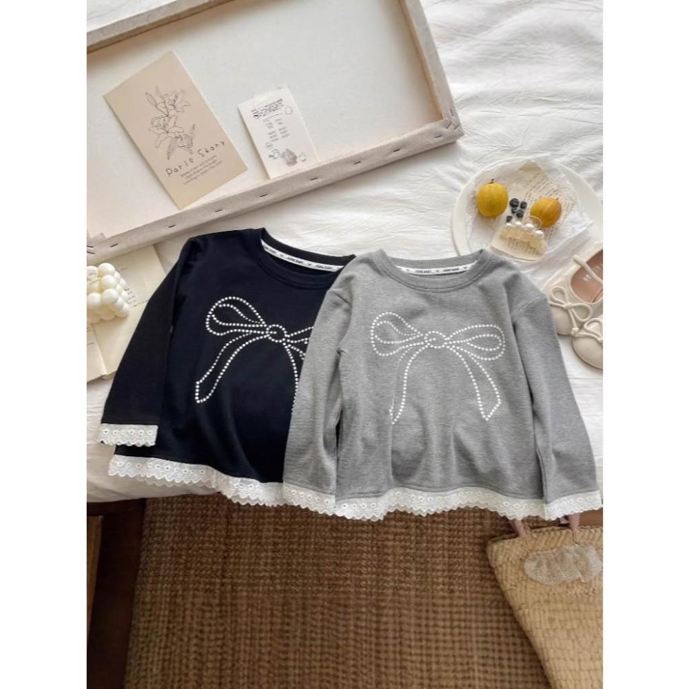 ★斌同學福利社★ 010春秋款 女童 蝴蝶結甜美圓領蕾絲邊薄款長袖上衣 女童長袖 女大童