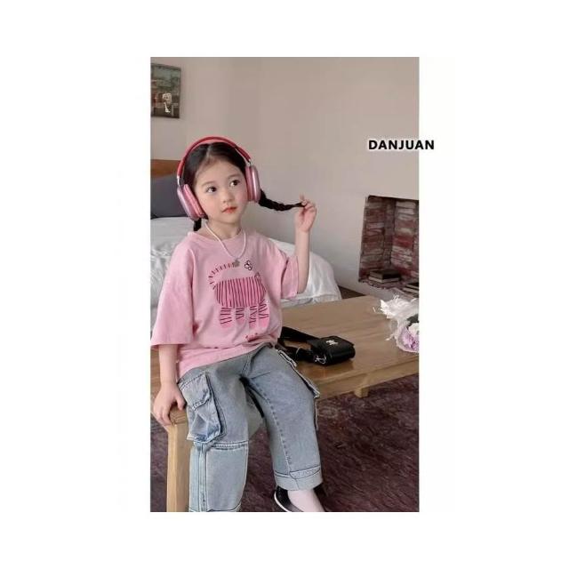 ★斌同學福利社★005夏款 女童純棉短T 字母印花個性休閒上衣 女童短袖 女大童
