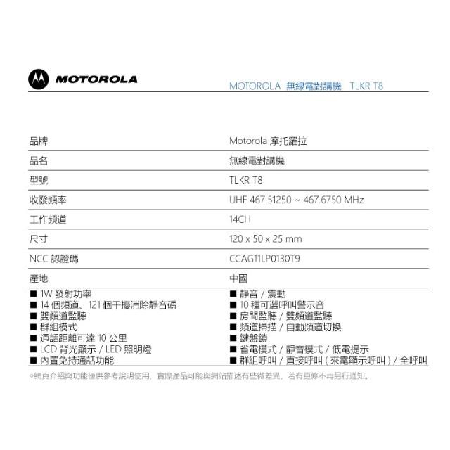 GUARD吉 MOTOROLA 摩托羅拉 免執照無線電對講機 TLKR T8 (1支裝) 對講機 無線對講機