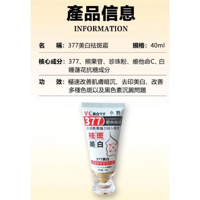 小野博士|377美白修復霜 40ml 美白修復 (377美白·そばかすクリーム )台灣出貨