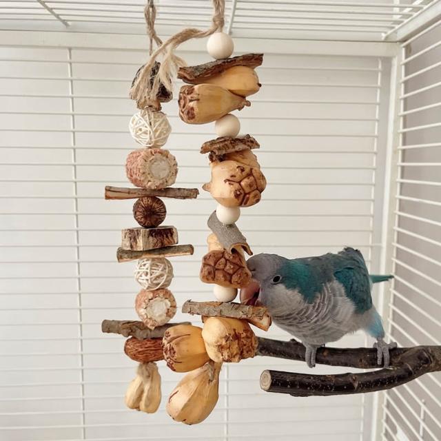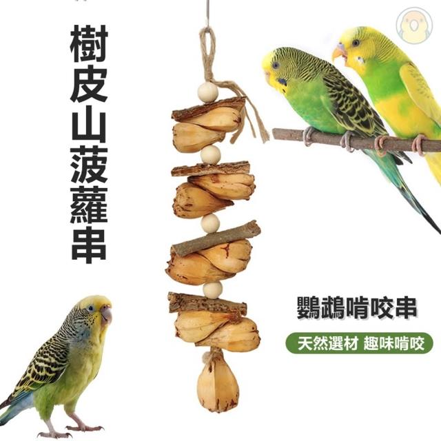 [蹦蹦鳥] 樹皮山菠蘿啃咬吊串 天然材質 鳥籠玩具 中小型鸚鵡
