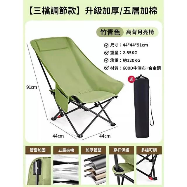 高背月亮椅 免安裝三檔調節 牛津布 戶外折疊椅 (附收納袋特大號露營椅 折疊椅 導演椅 休閒椅 釣魚椅)