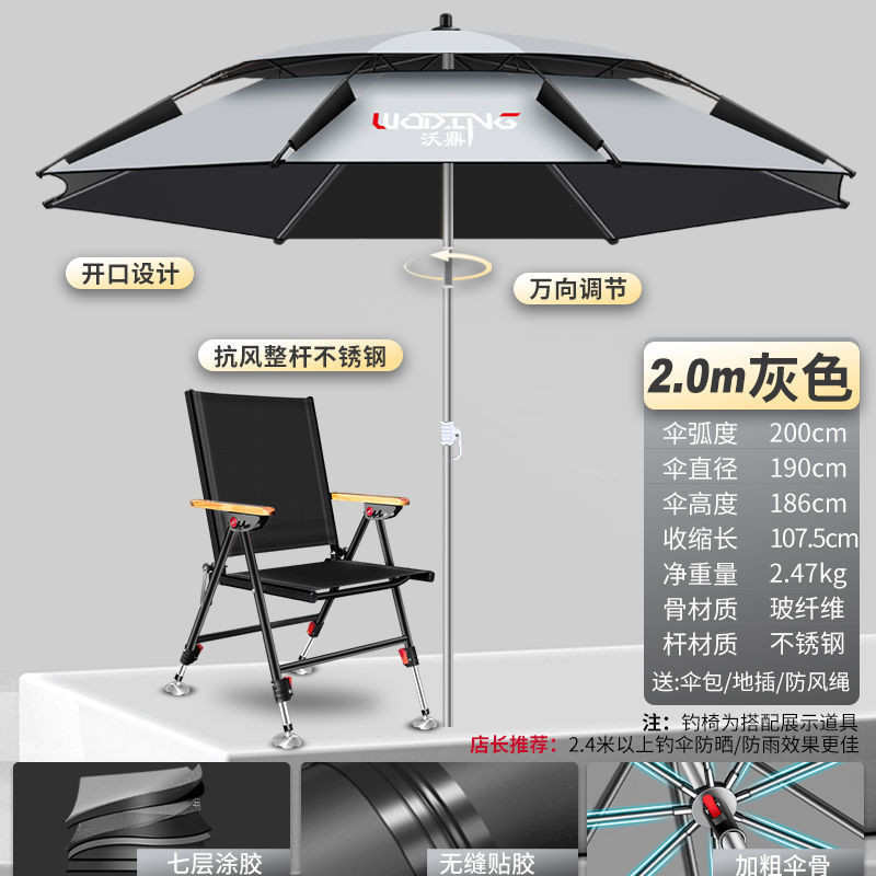 安安家具特惠免運+超低價✨沃鼎不銹鋼釣魚傘 加厚黑膠戶外遮陽傘 防曬遮陽傘 釣魚大傘 防雨釣魚專用傘 稜形雨傘 專業