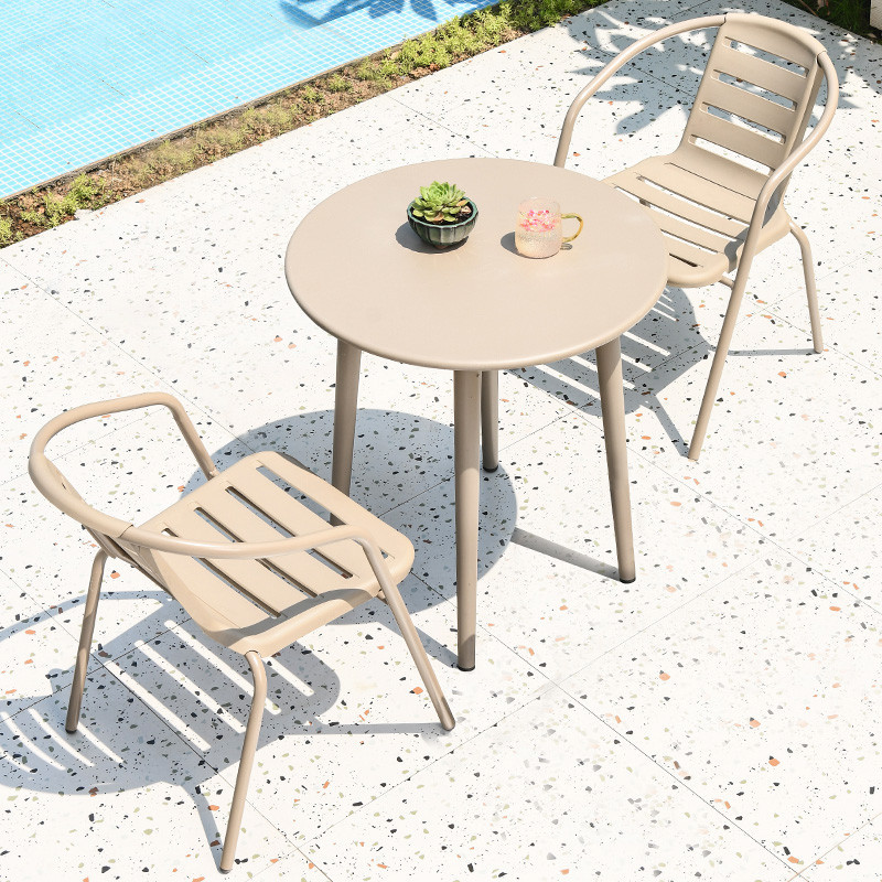 安安家具莫家戶外桌椅庭院室外休閒露天露臺外擺鋁合金餐桌陽臺茶幾圓桌