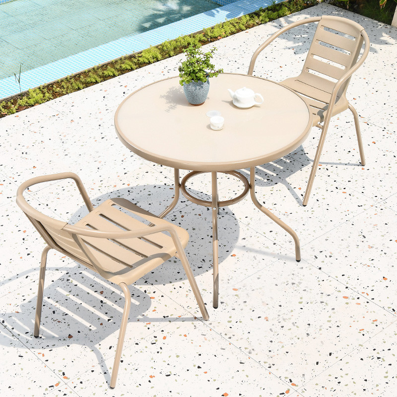 安安家具莫家戶外桌椅庭院室外休閒露天露臺外擺鋁合金餐桌陽臺茶幾圓桌