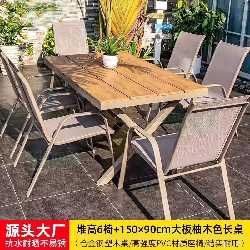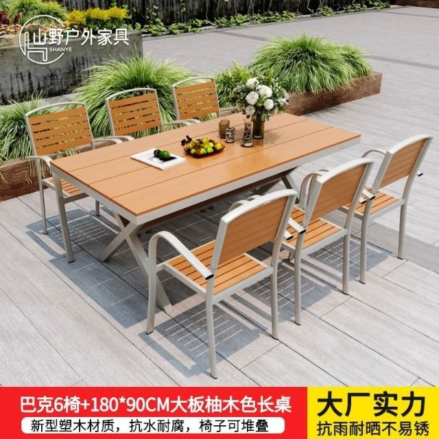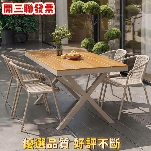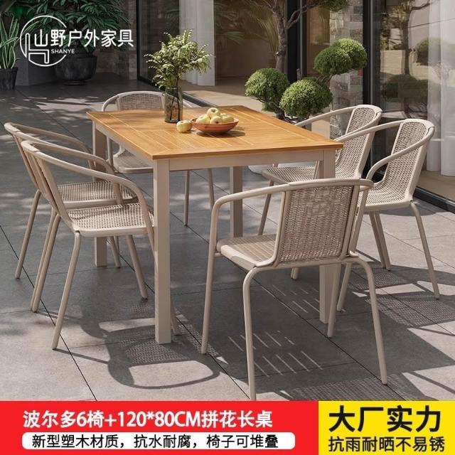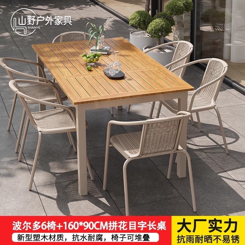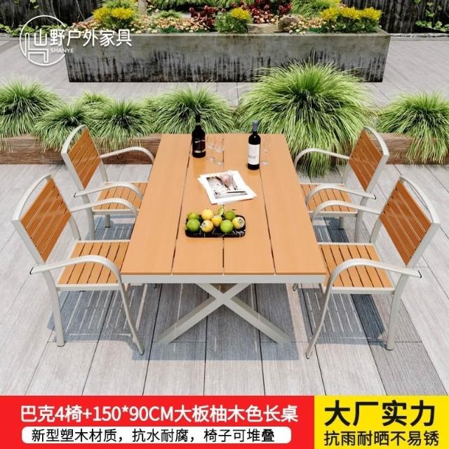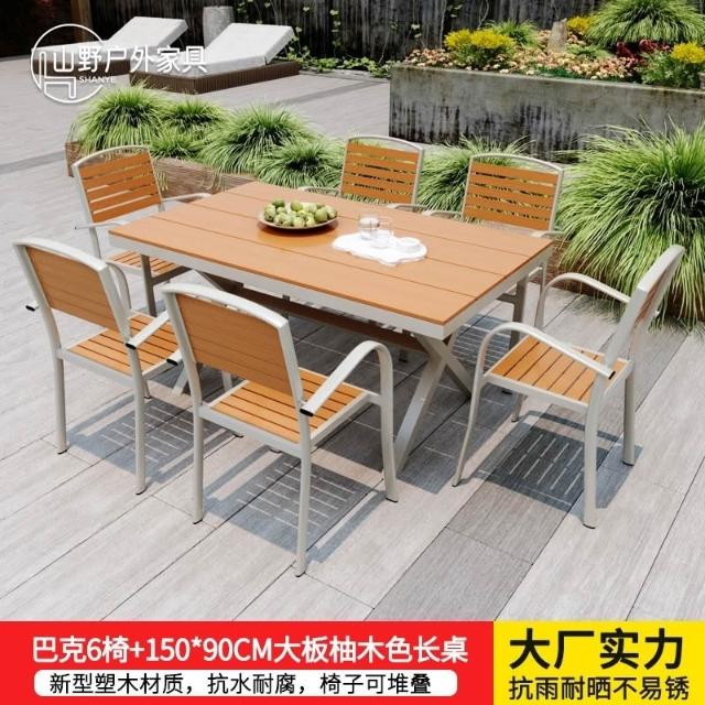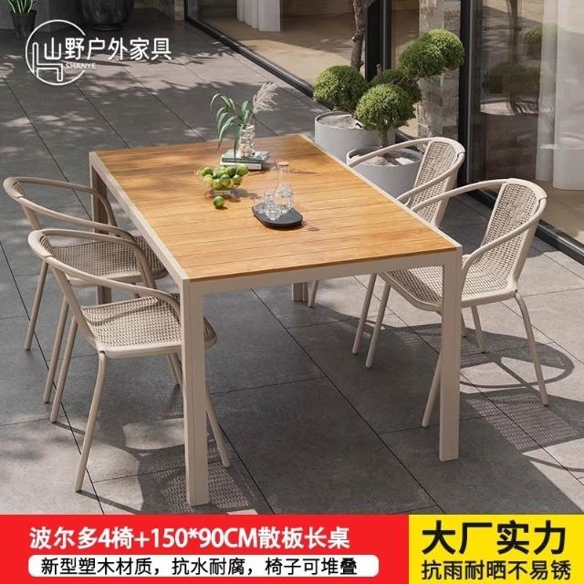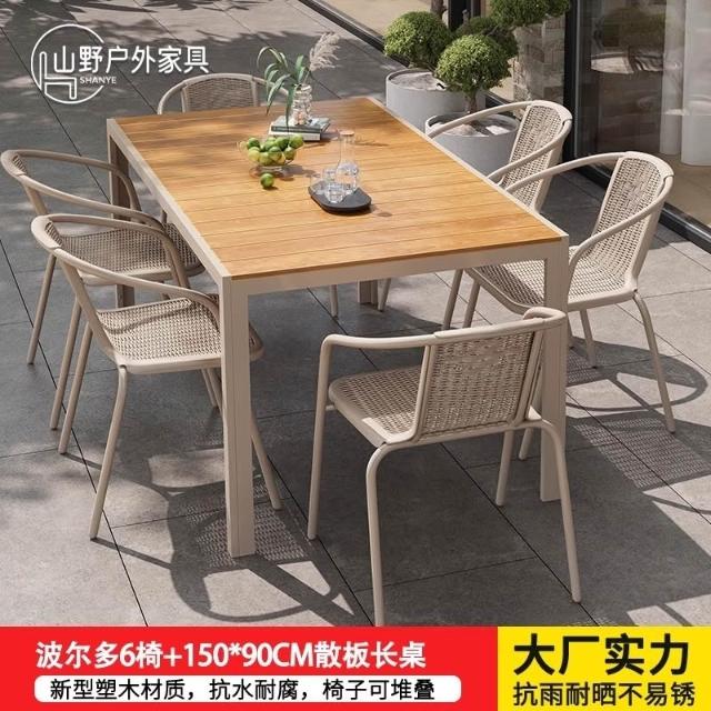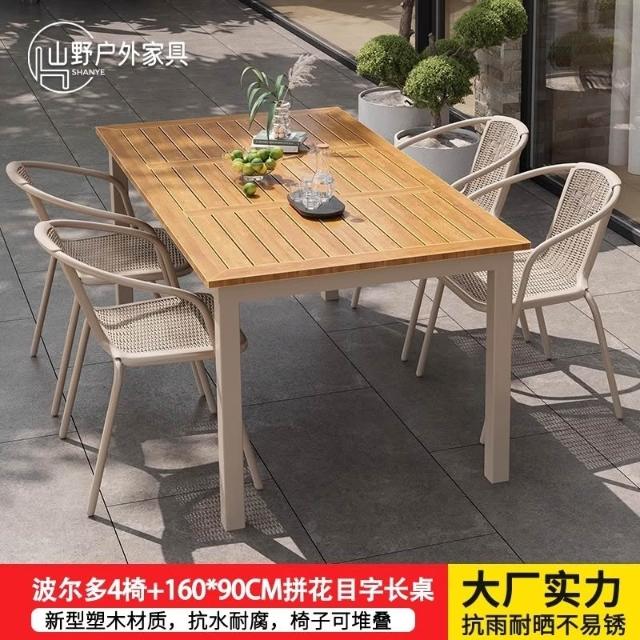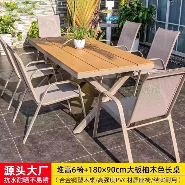 安安家具戶外桌椅組合庭院花園別墅室外院子外擺多人合金鋼塑木桌椅可淋雨