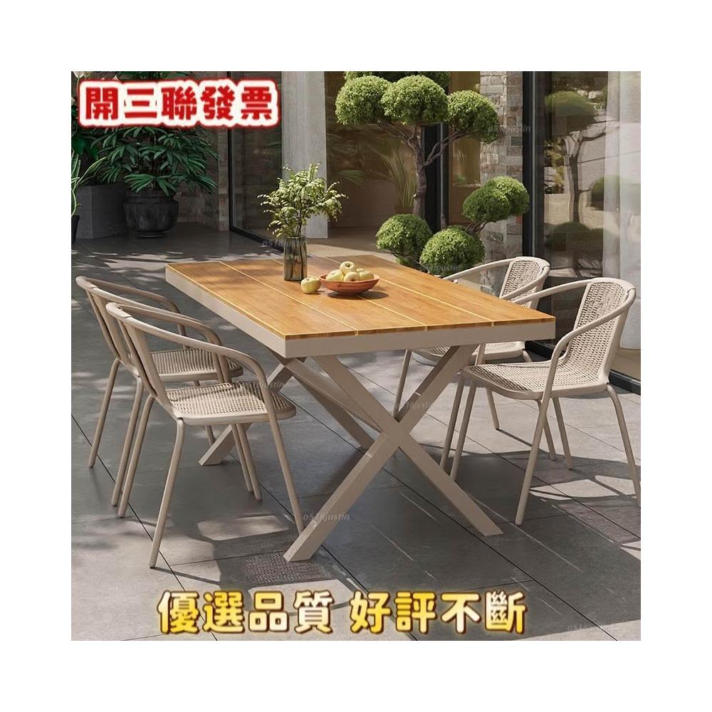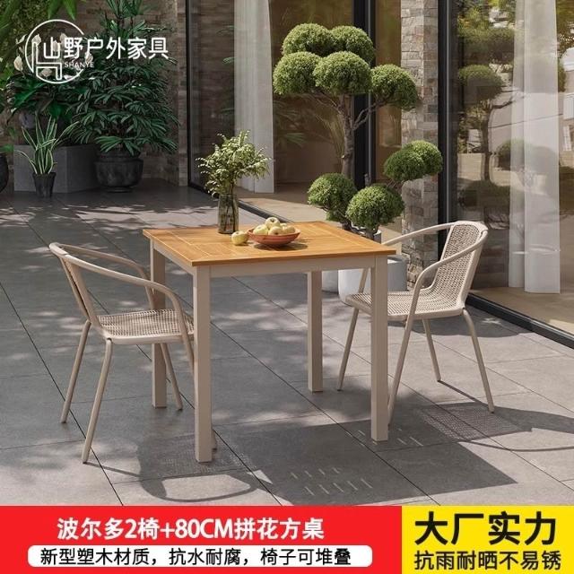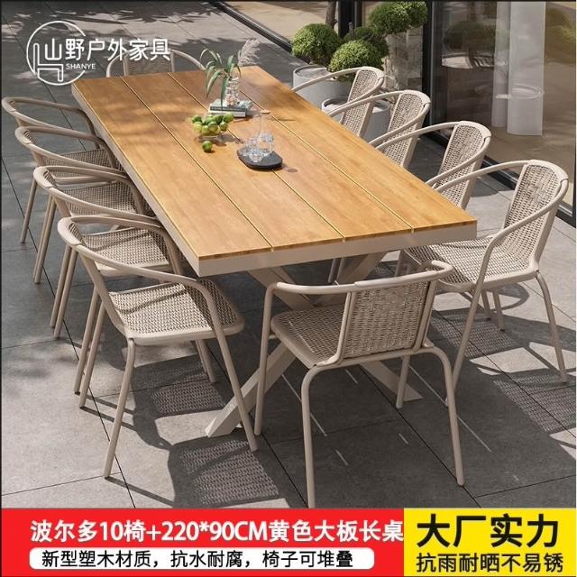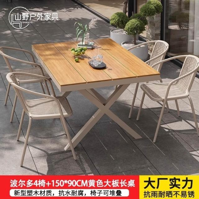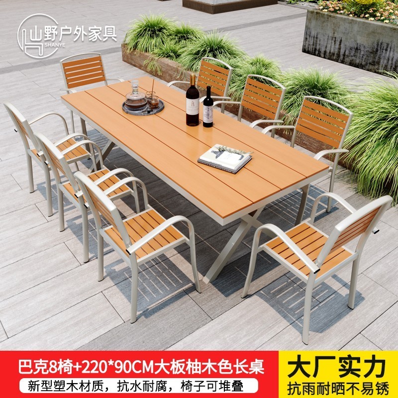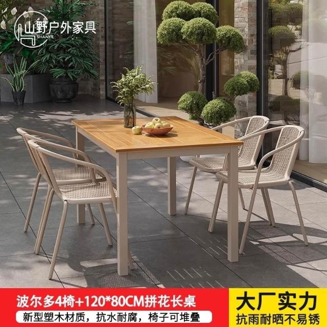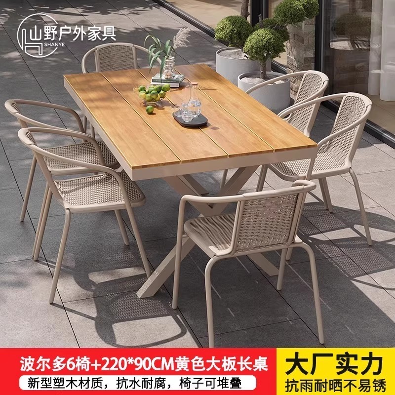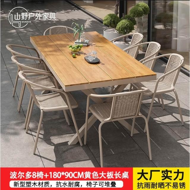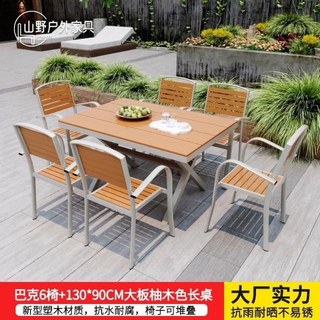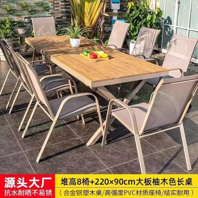 安安家具戶外桌椅組合庭院花園別墅室外院子外擺多人合金鋼塑木桌椅可淋雨