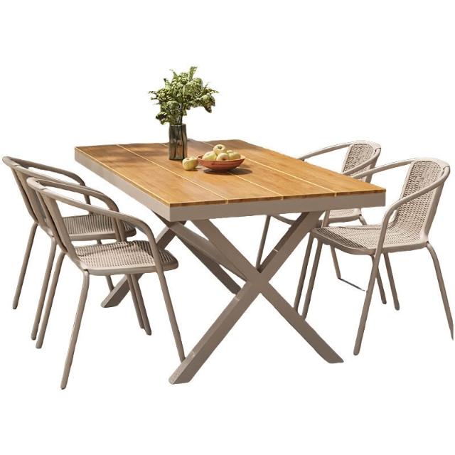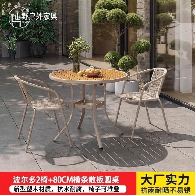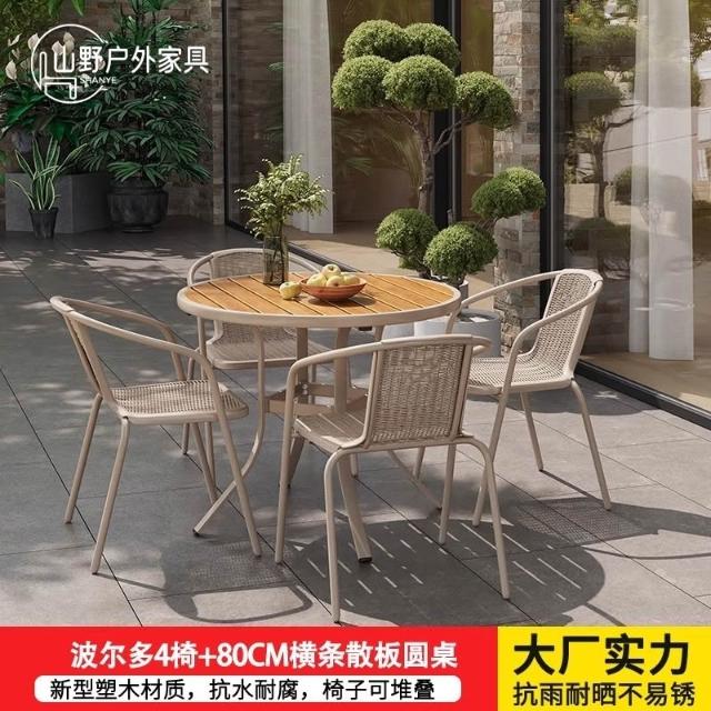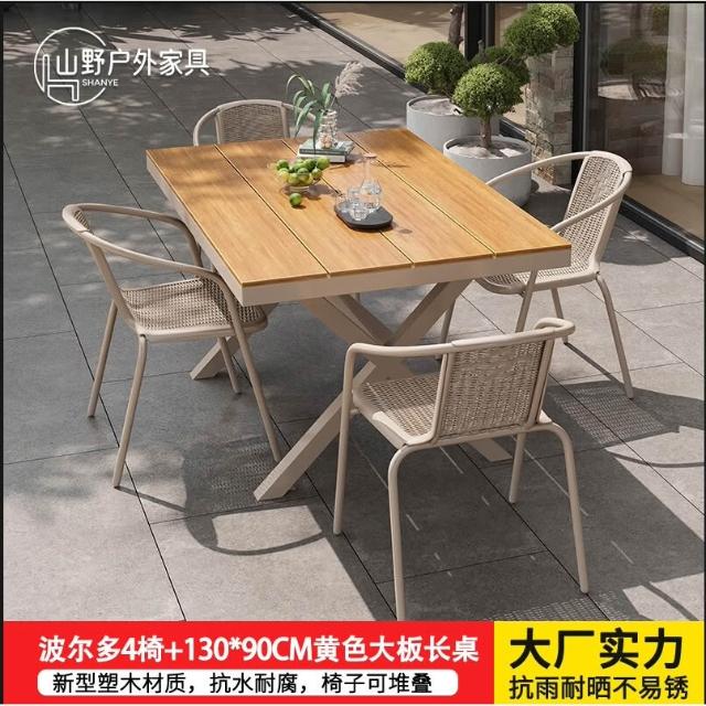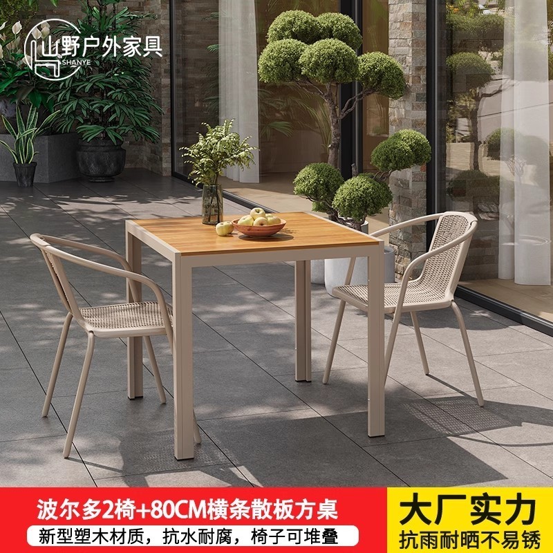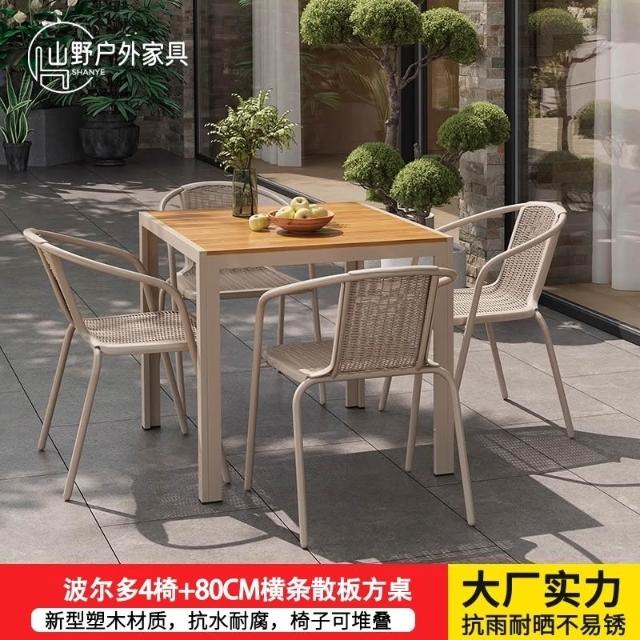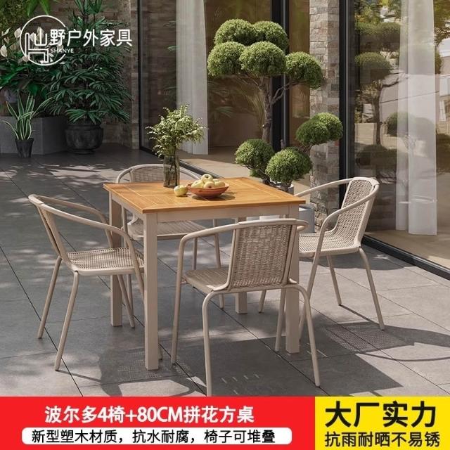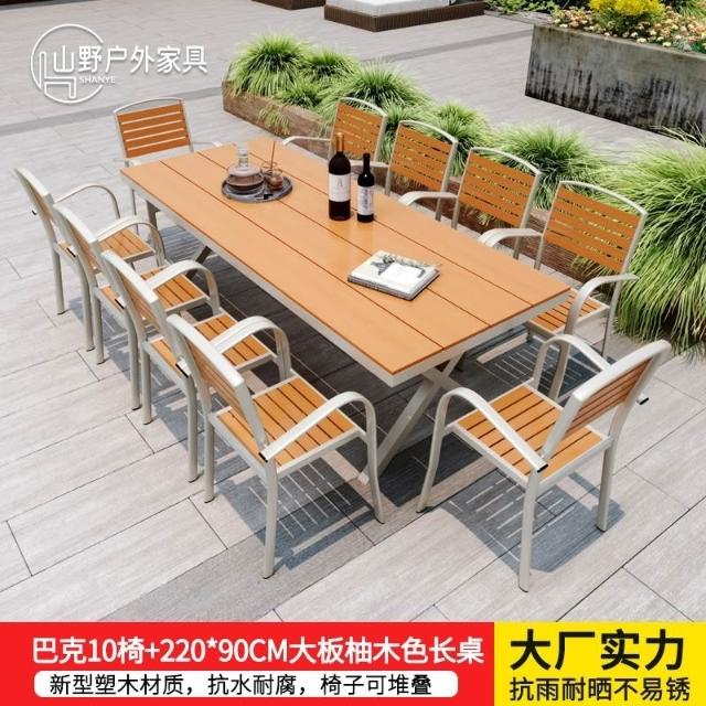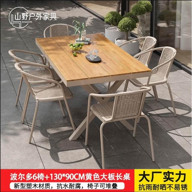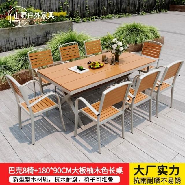 安安家具戶外桌椅組合庭院花園別墅室外院子外擺多人合金鋼塑木桌椅可淋雨